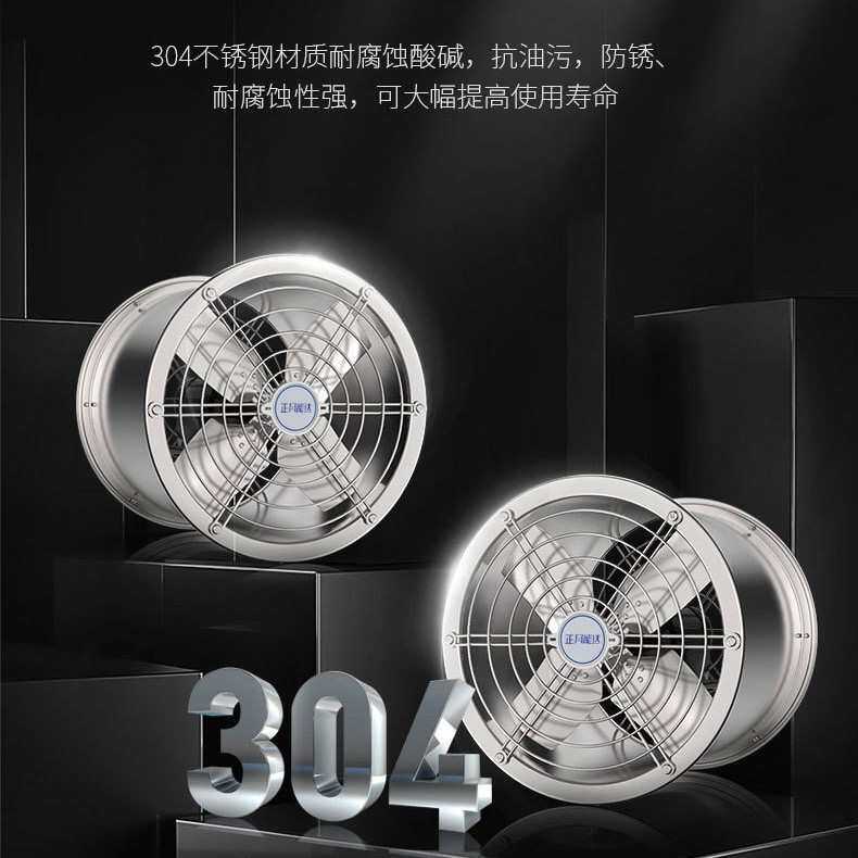 14寸304不锈钢工业排气扇 圆筒排风扇厨房抽油烟风机换气静音厂家