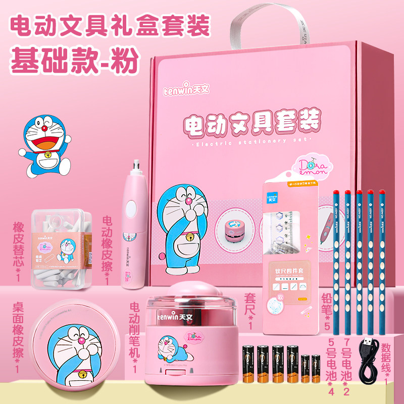 哆啦a梦天文电动文具套装得力开学大礼包小学生一年级学习用品7岁男孩生日礼物礼盒女孩全自动削笔器6岁套盒9