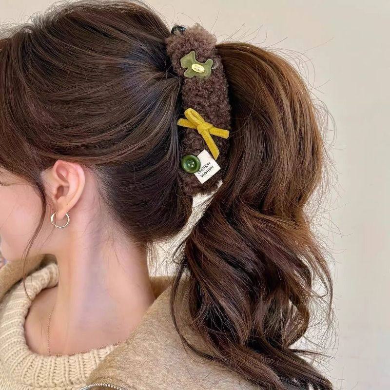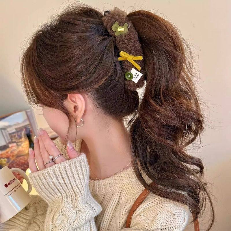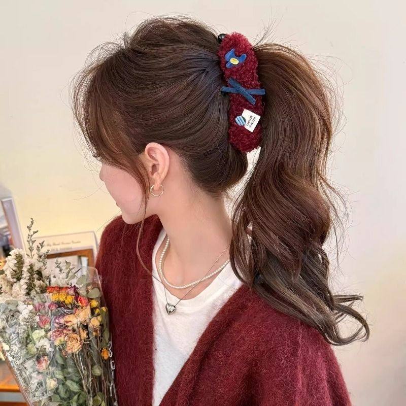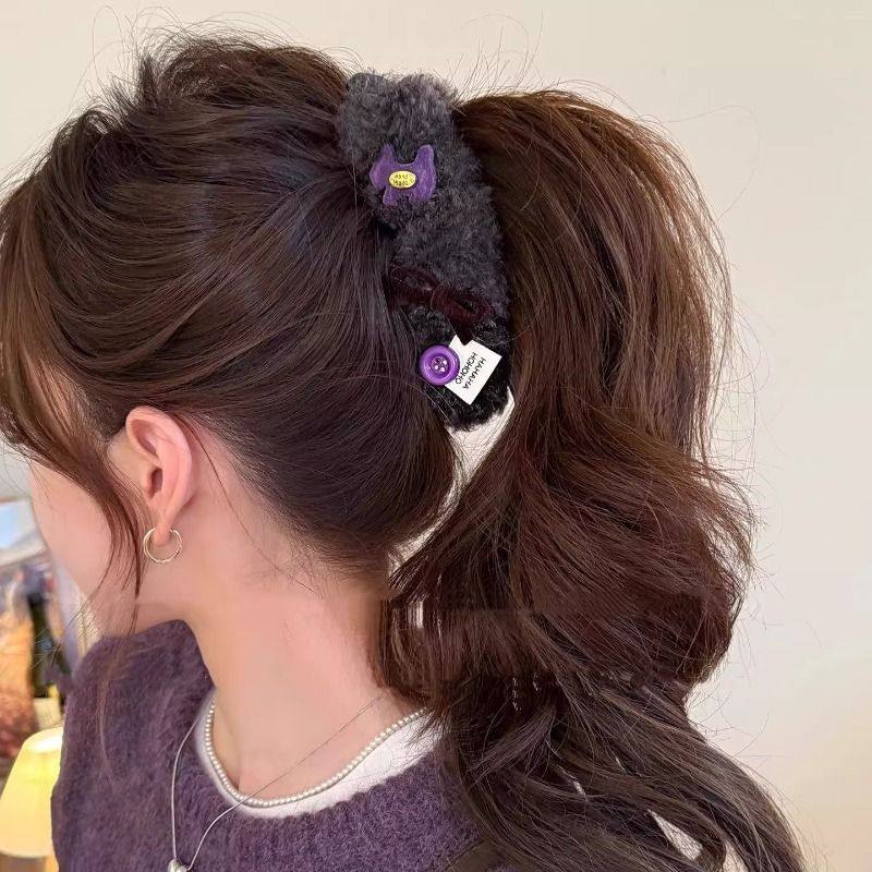 可爱小狗秋冬羊羔毛香蕉夹女2025新款爆款高马尾发夹甜美发饰头饰