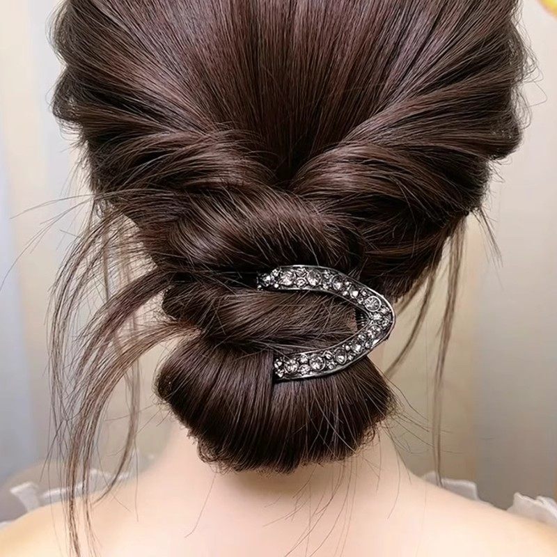 高马尾V型抓夹发夹固定神器后脑勺丸子头高级感水钻夹子头饰女