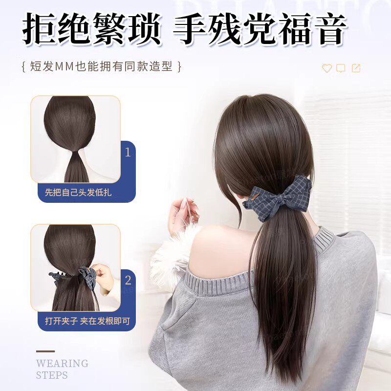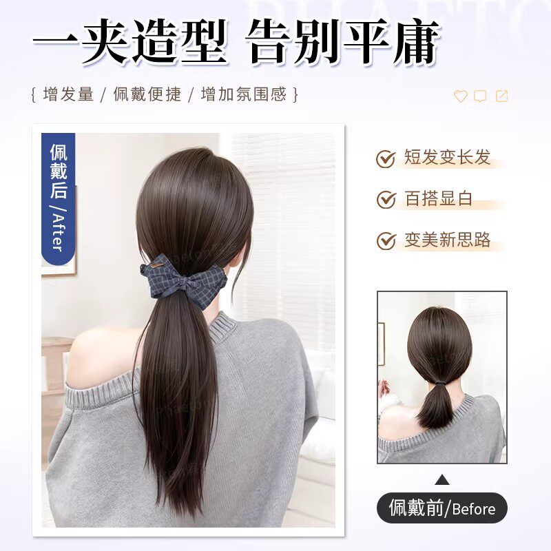 蝴蝶结香蕉夹直马尾假发女韩系感抓夹低扎仿真量直发辫子短发长发