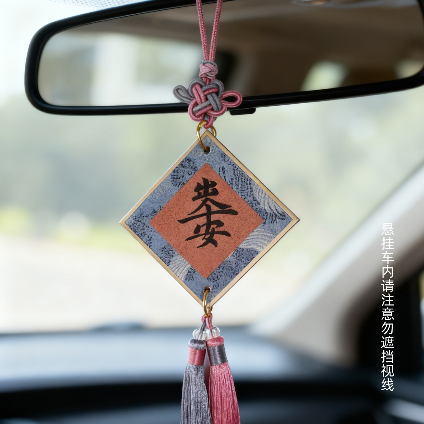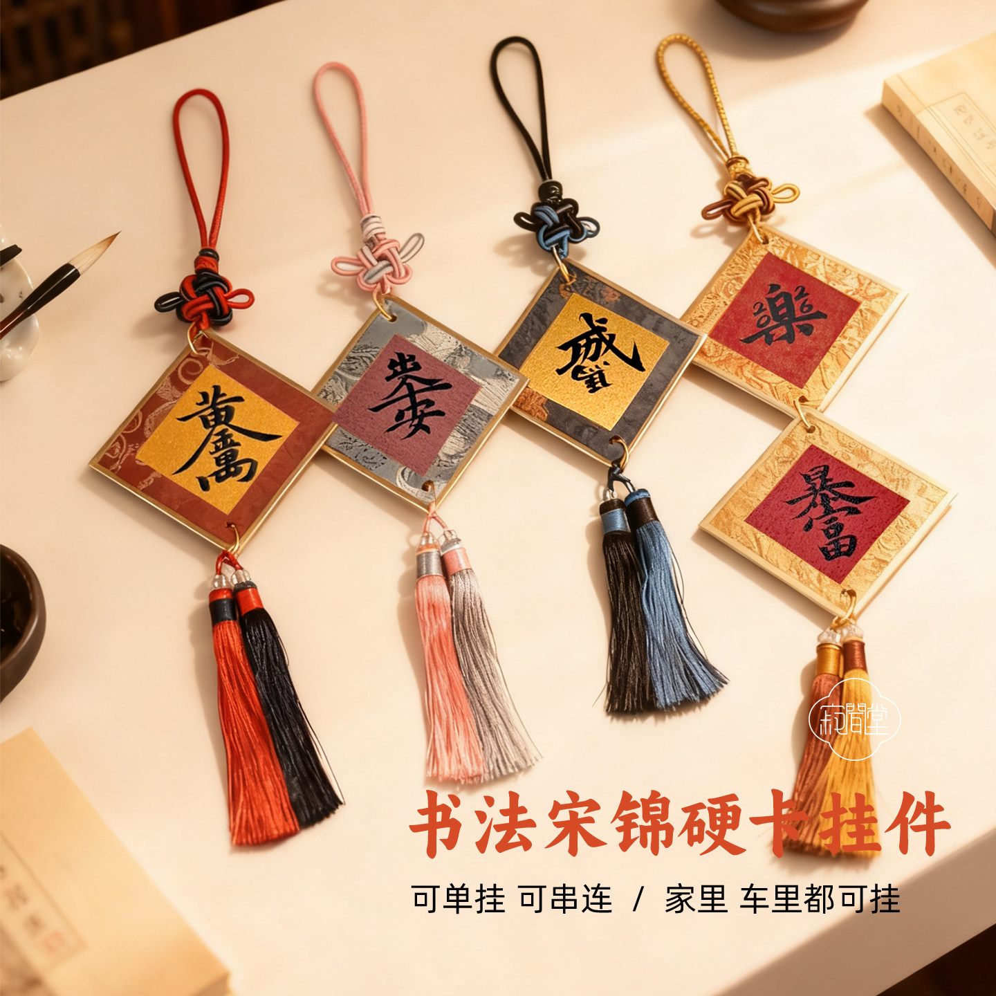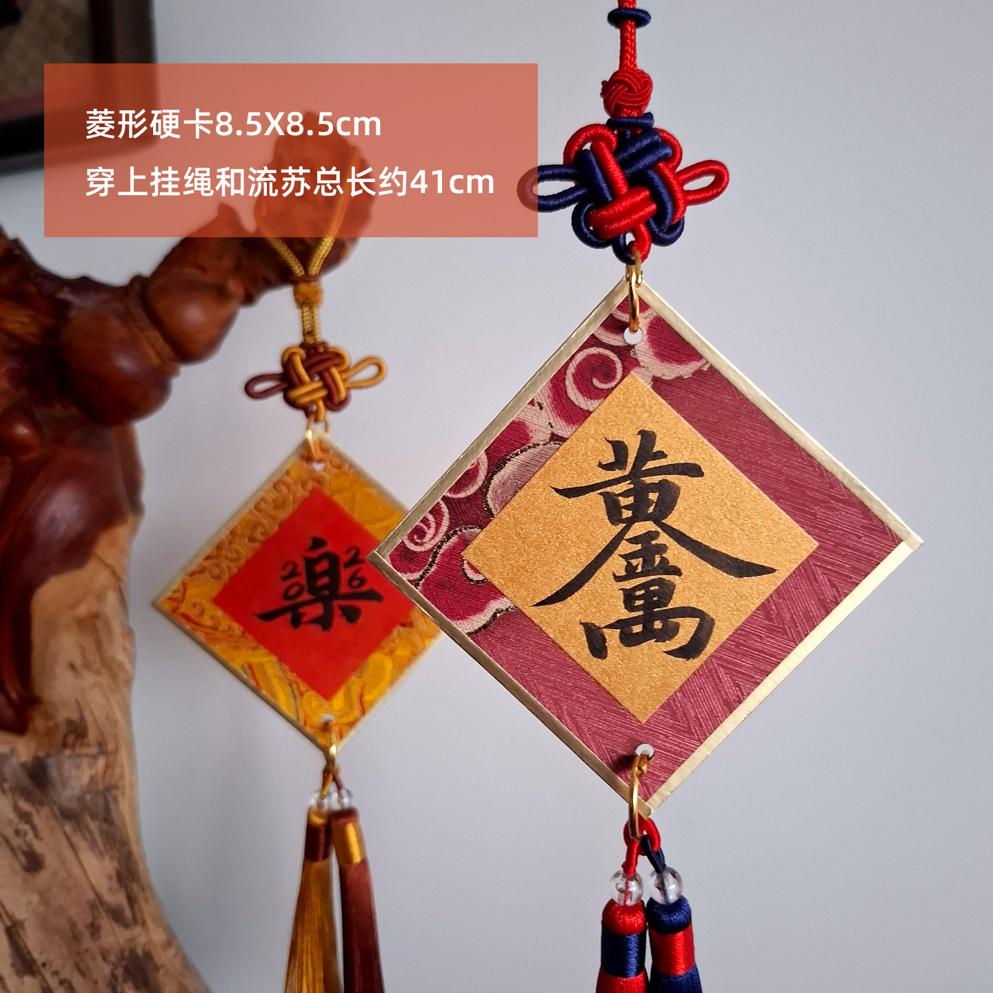 2026菱形宋锦福卡手写定制书法挂件春节合体字喜庆家饰品挂坠车饰
