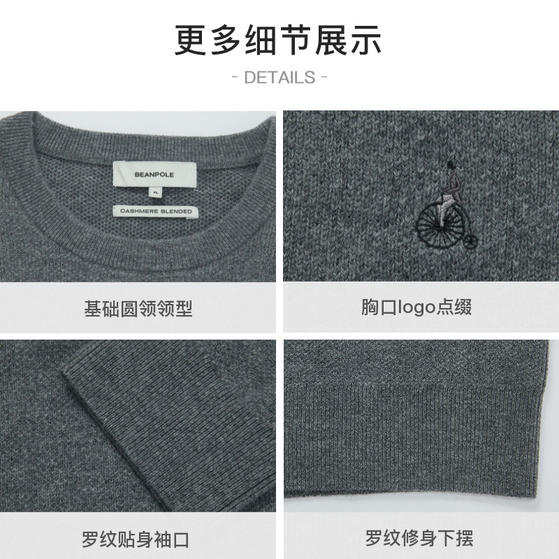 含山羊绒 BEANPOLE滨波 男士商务休闲风时尚运动针织长袖圆领毛衣
