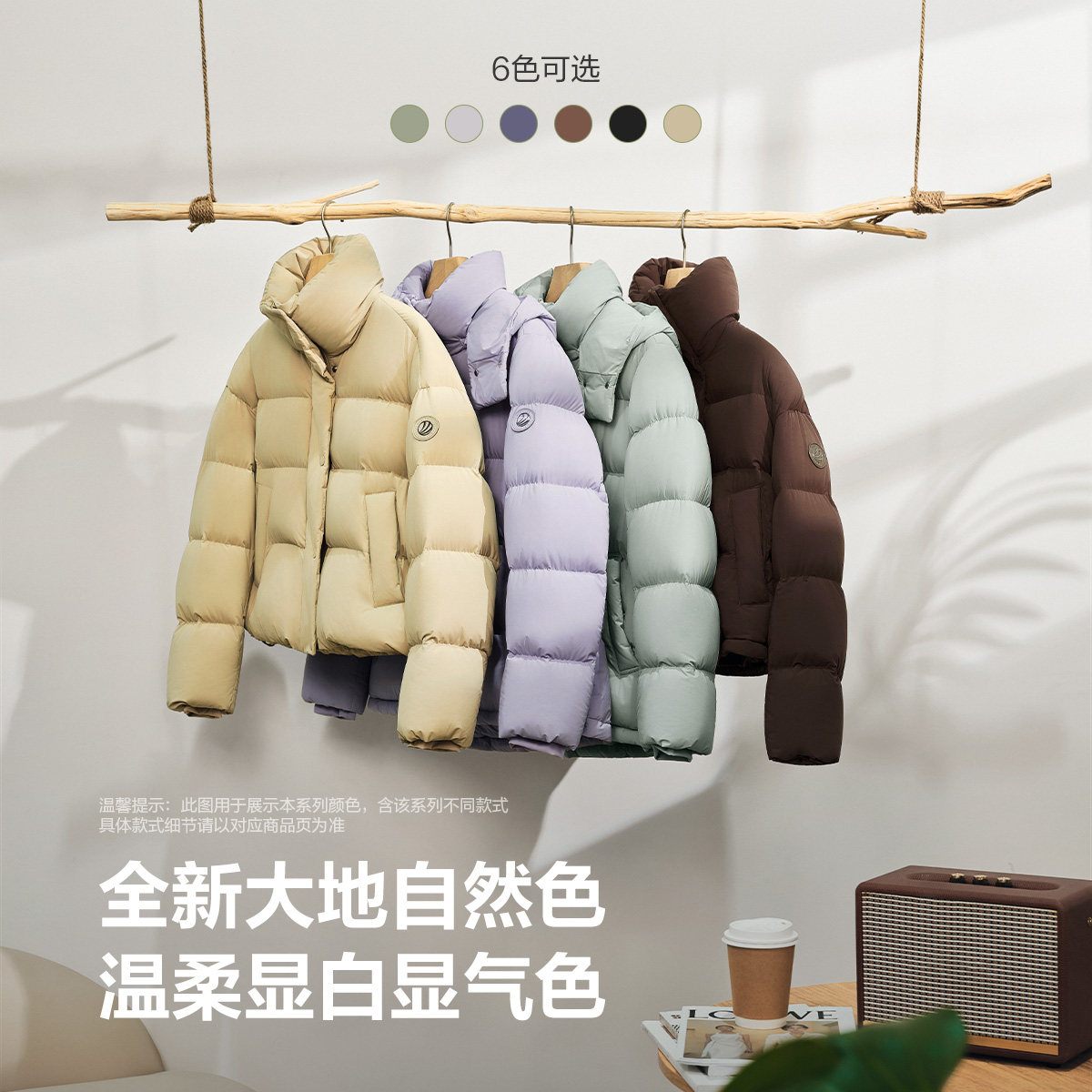【鞠婧祎同款】鸭鸭2025年冬新款百搭短款女士纯色立领羽绒服外套