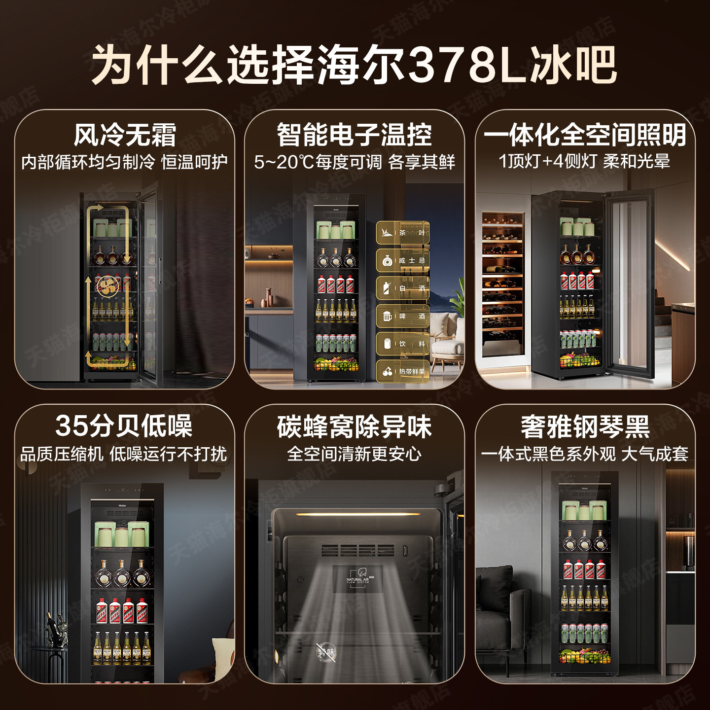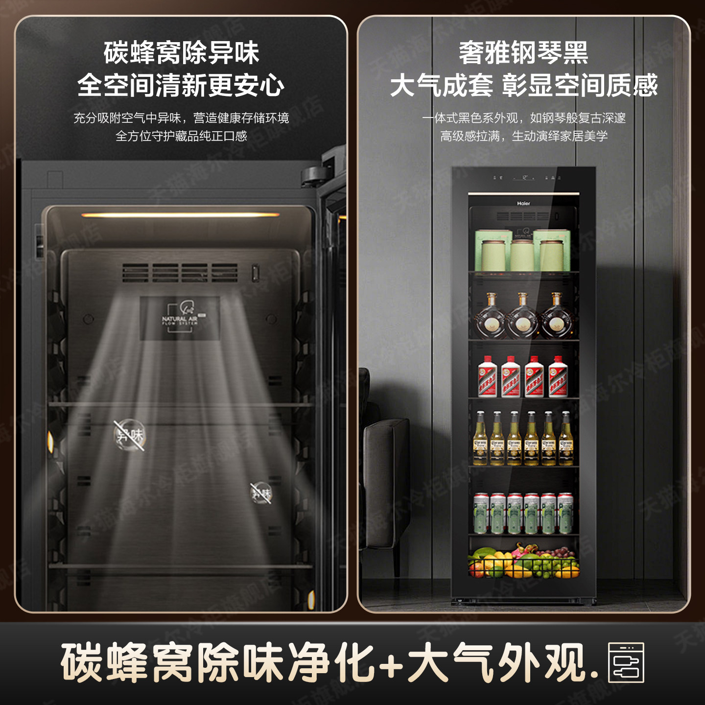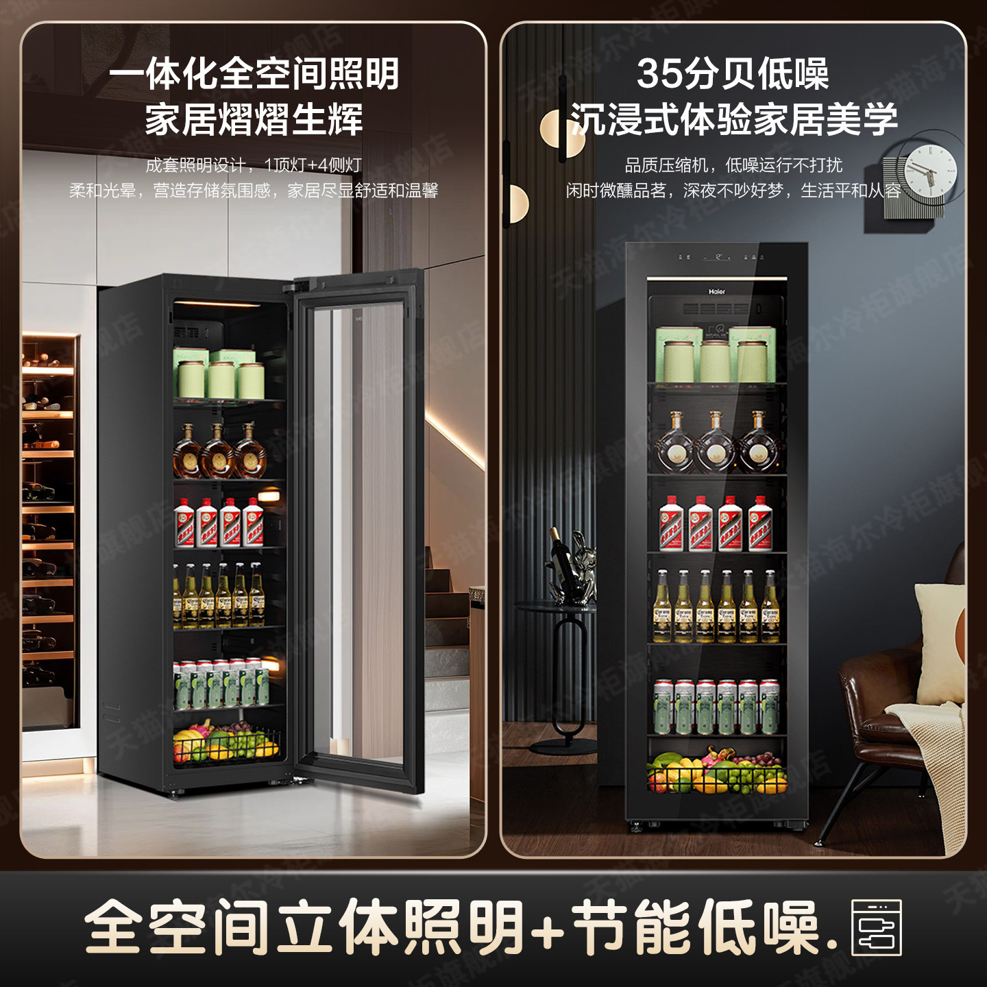 【新款】海尔冰吧酒柜组合378小型冷藏保鲜柜饮料水果客厅展示柜