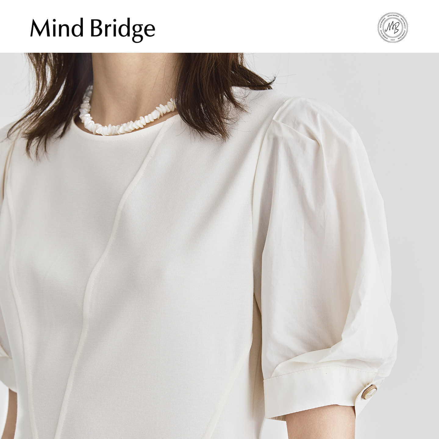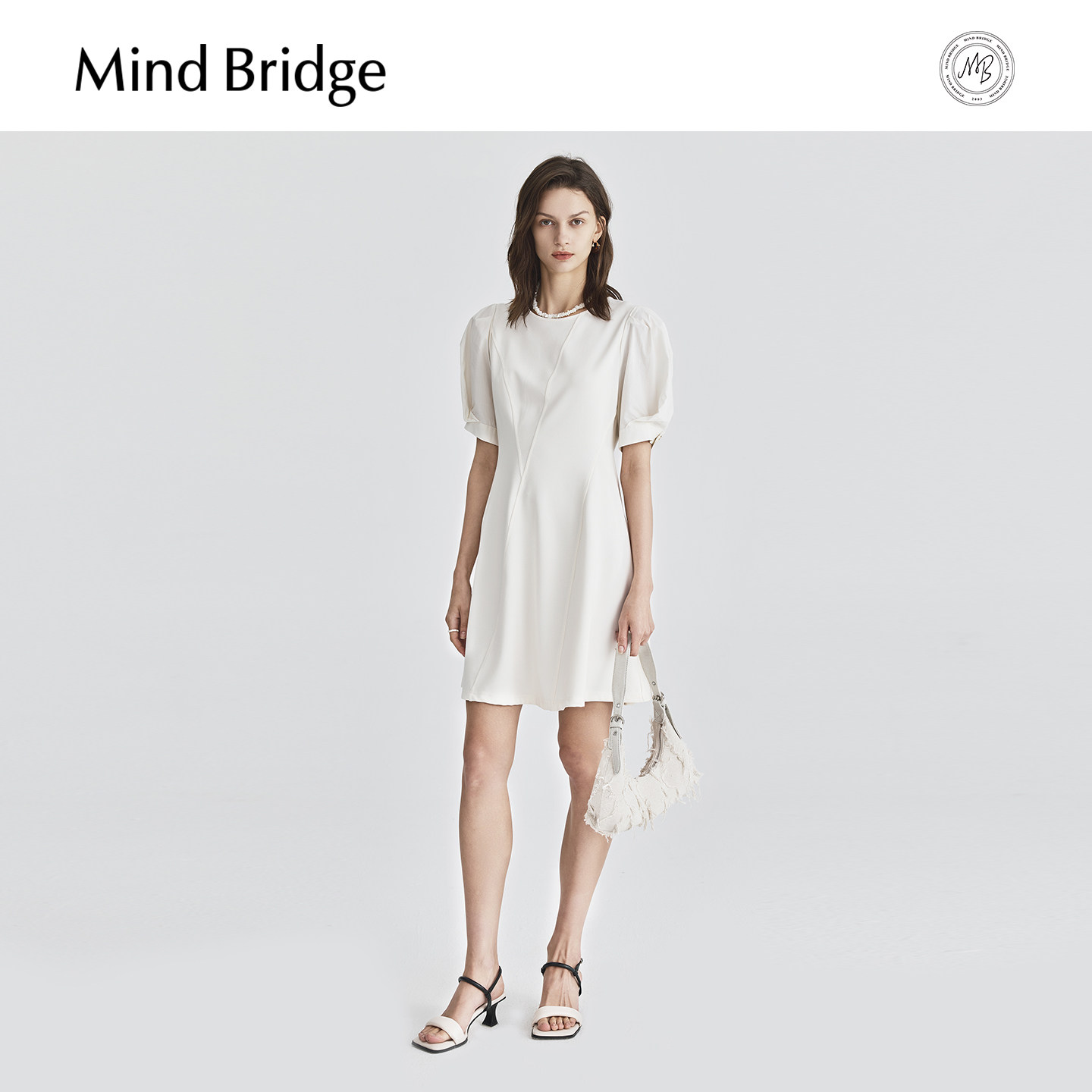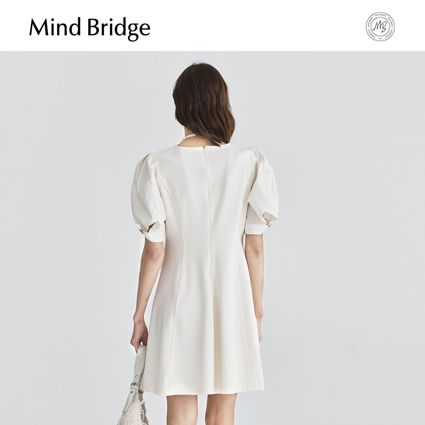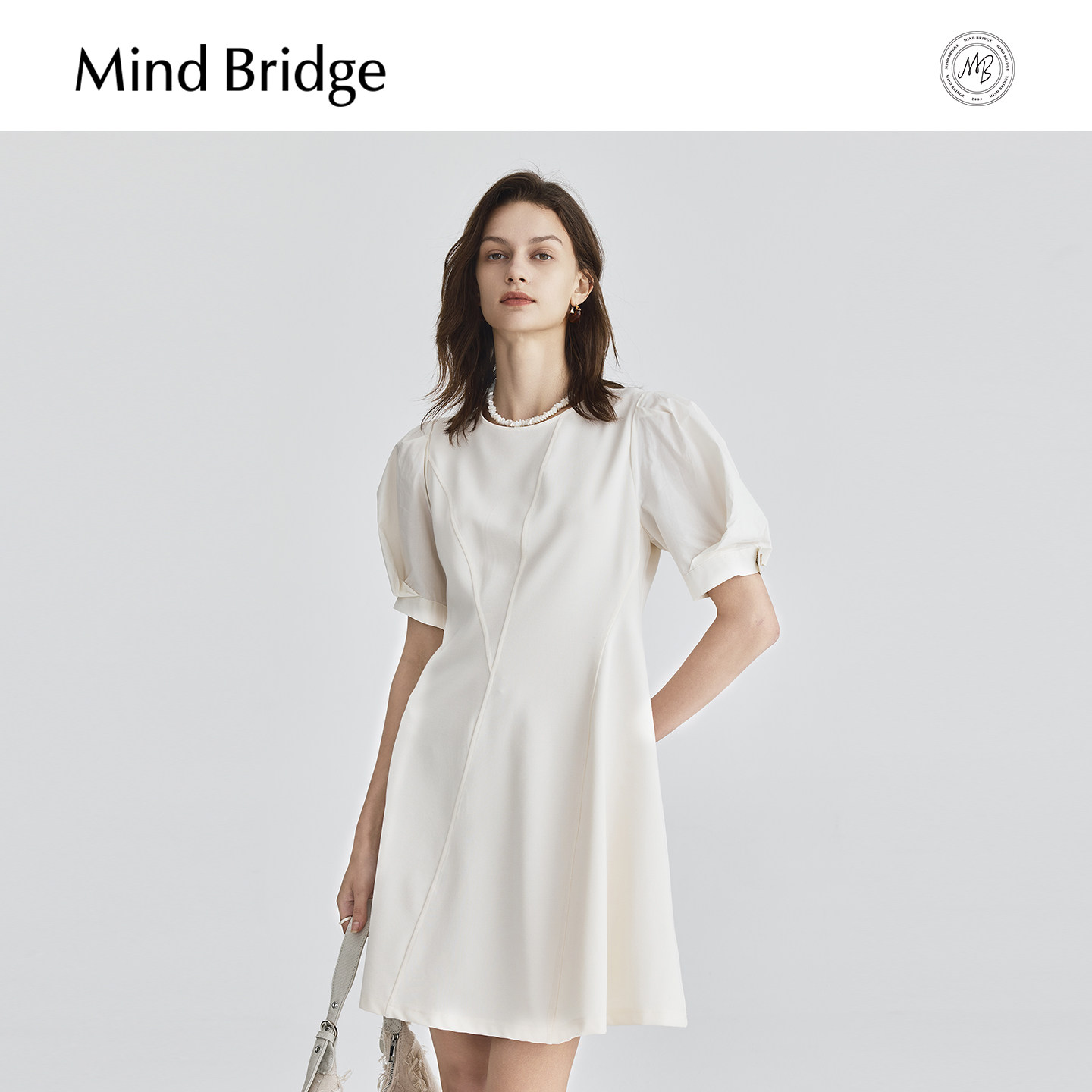 Mind Bridge圆领短袖连衣裙夏季气质A字裙女士设计感公主袖短裙