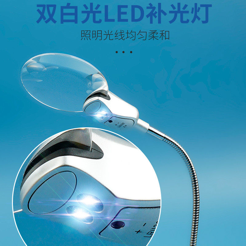博物馆看展放大镜台式带灯高清无边框珠宝古董展示用金属软管10倍
