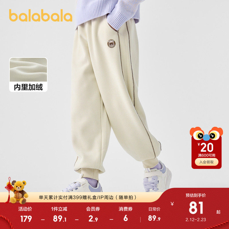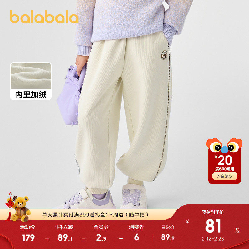 巴拉巴拉童装儿童加绒长裤男女童秋冬装慢跑裤子加绒保暖加厚运动