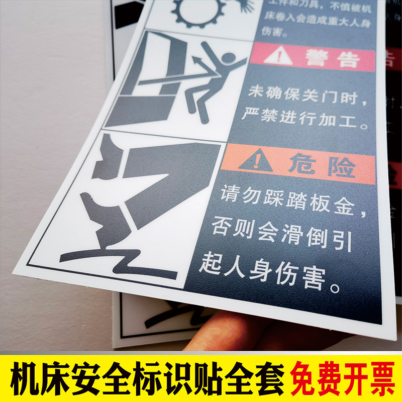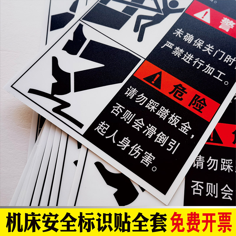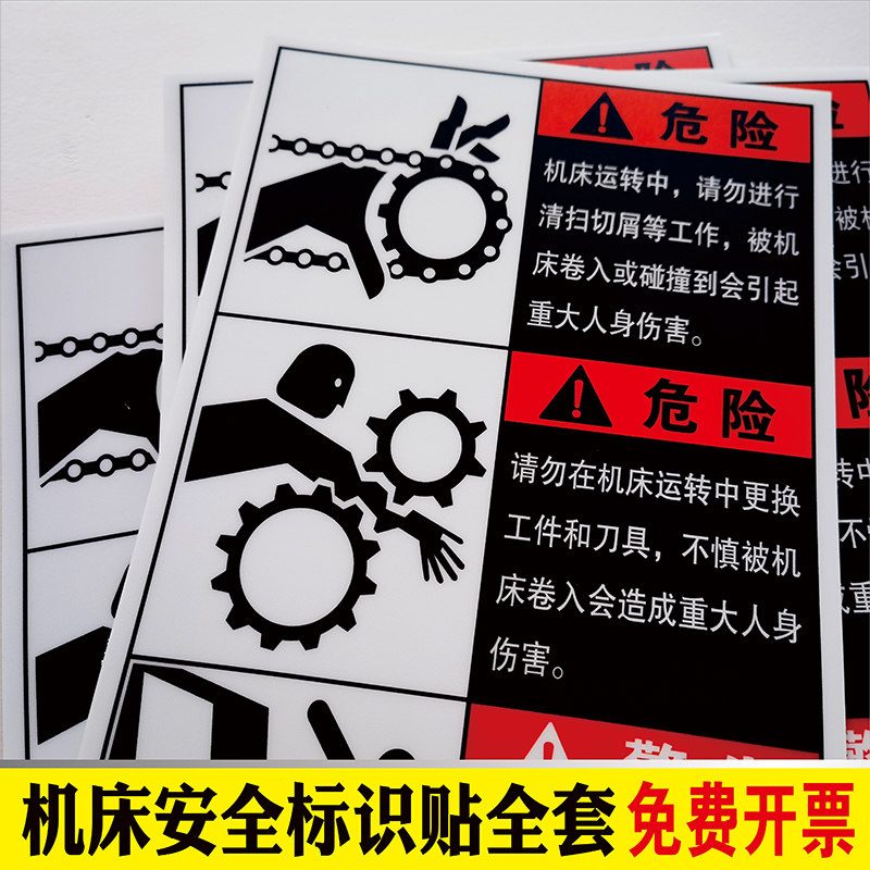 机床安全警示警告标签主轴旋转禁止接近车床使用说明须知3M磨砂PVC机械设备警示标识注意安全有电危险警告贴