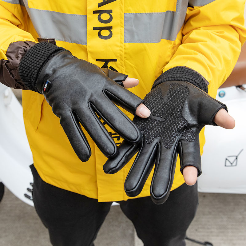 骑手手套男女冬季装备骑车加绒保暖露指漏二指快递骑行跑外卖专用