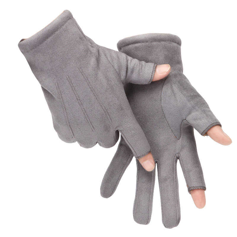 露二指骑行手套保暖冬季触屏韩版毛绒防寒漏指骑车办公写字神器