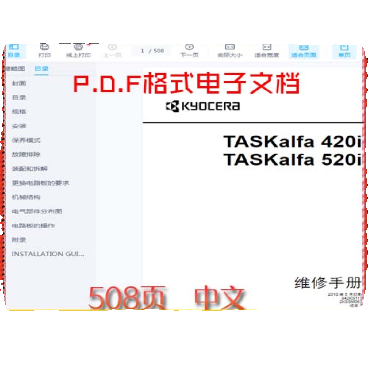 京瓷 TASKalfa 420i 520i 420 520 黑白复印机中文维修手册