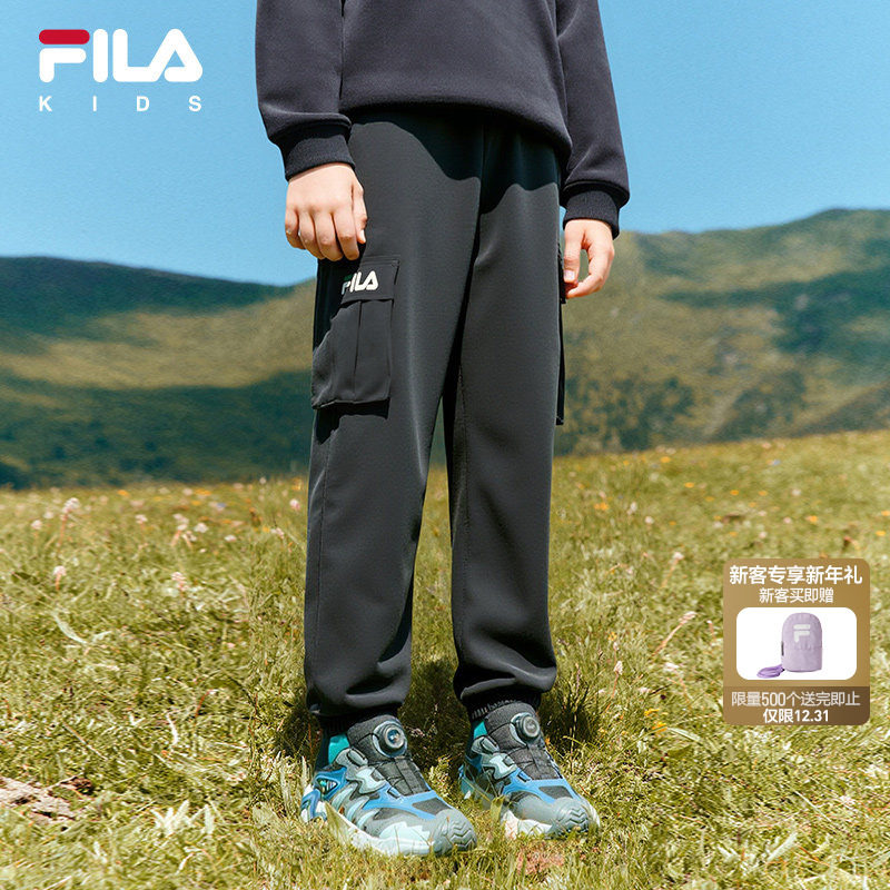 FILA斐乐儿童童装加绒裤子2025年冬季新款男童女童梭织工装长裤