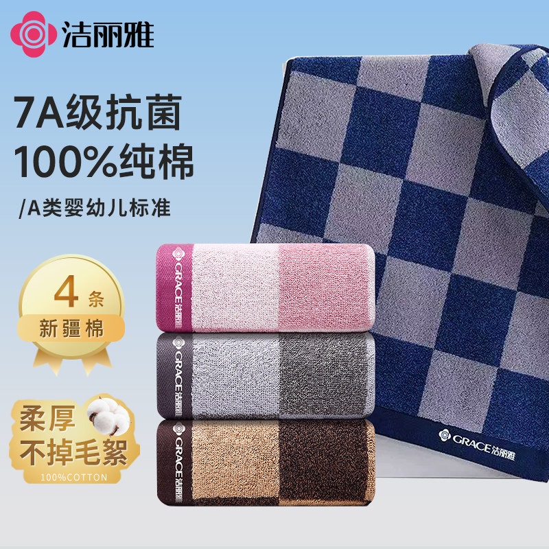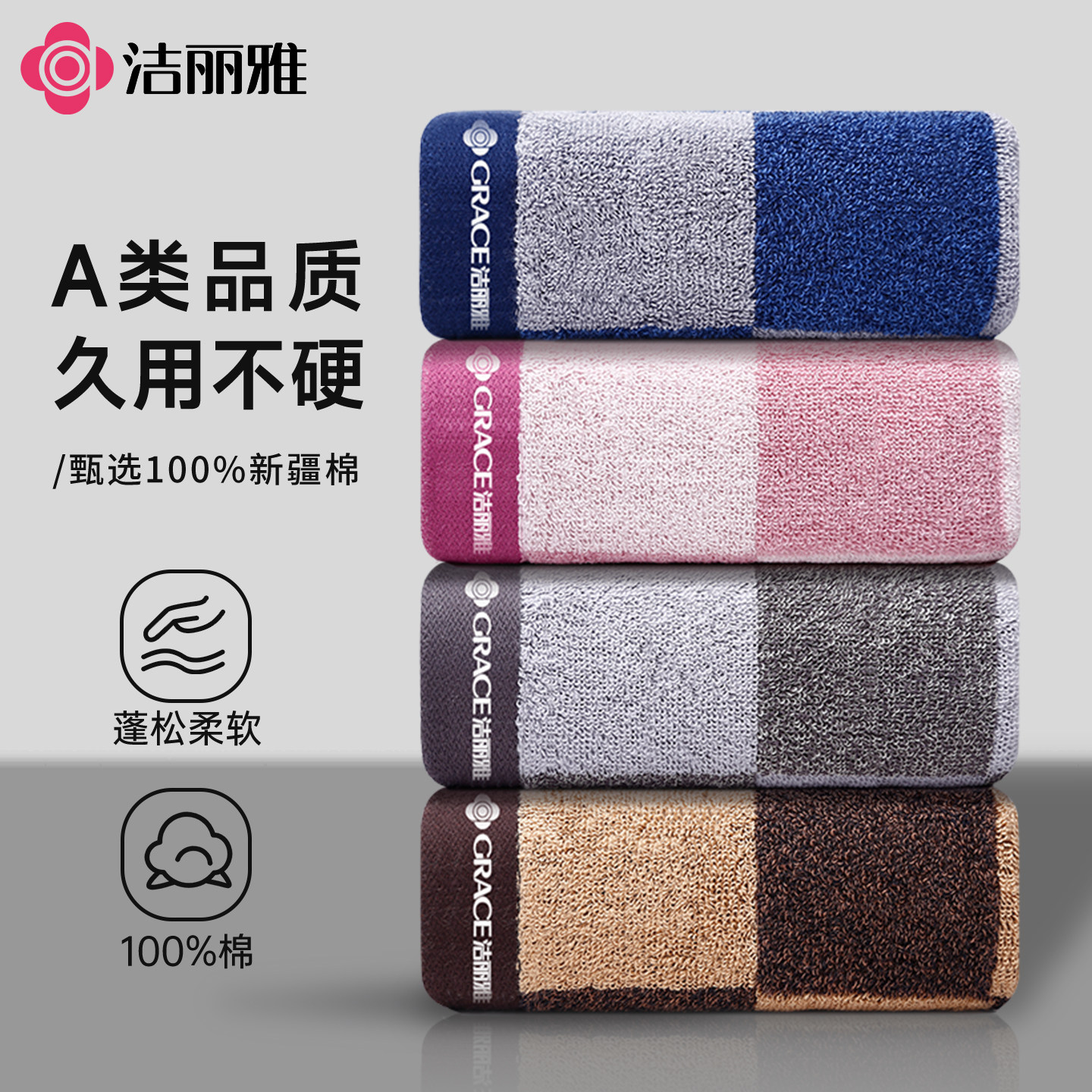 洁丽雅毛巾纯棉洗脸成人100%全棉洗澡吸水不掉毛巾2025新款新疆棉