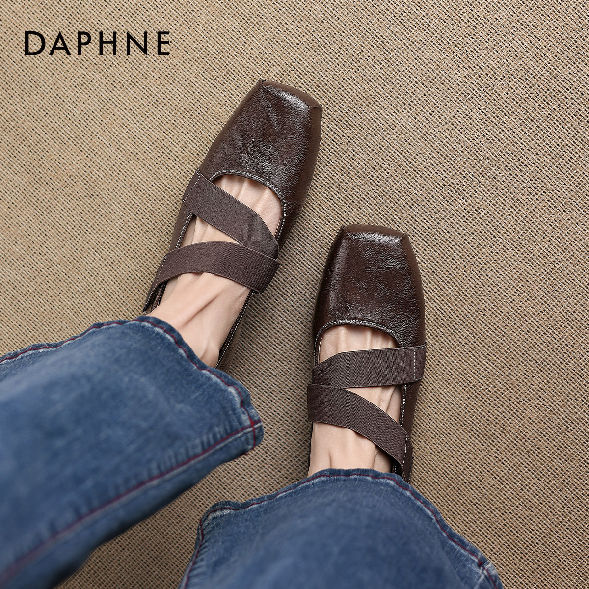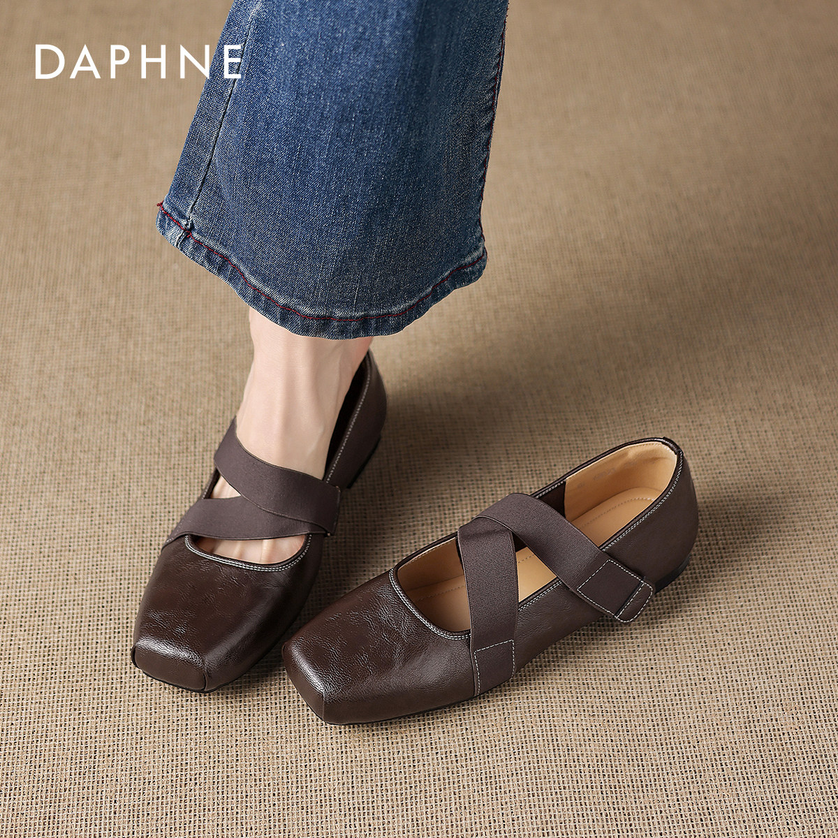 仿芭蕾舞鞋 方头绑带 复古棕调 尽显温柔