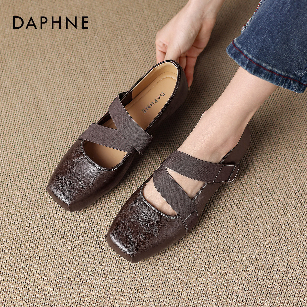 达芙妮芭蕾风单鞋女2026新款春季复古平底方头皮鞋软底玛丽珍女鞋