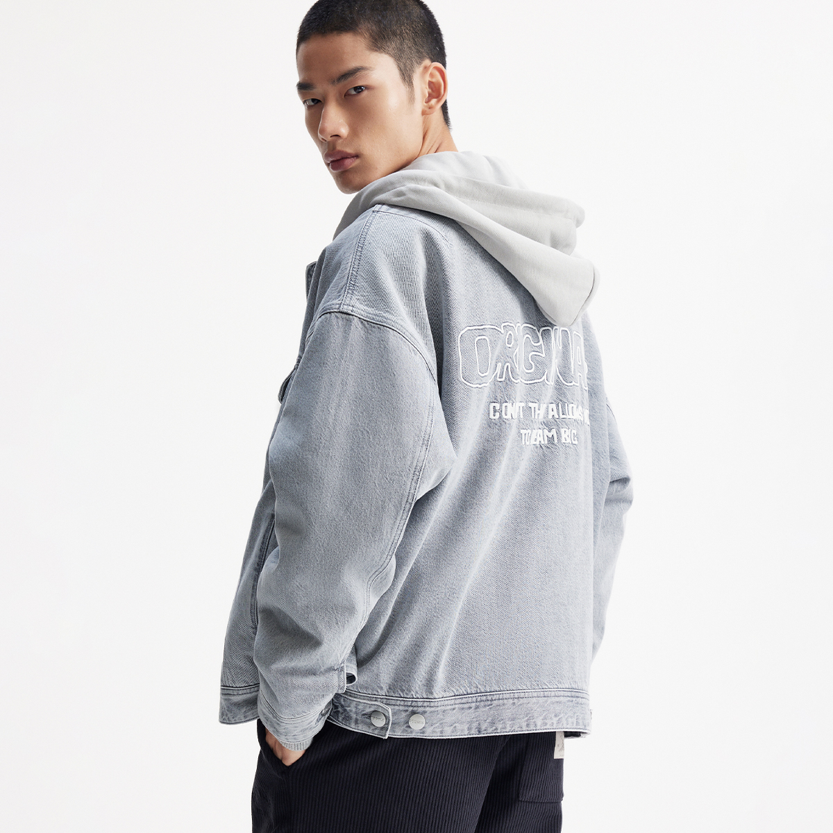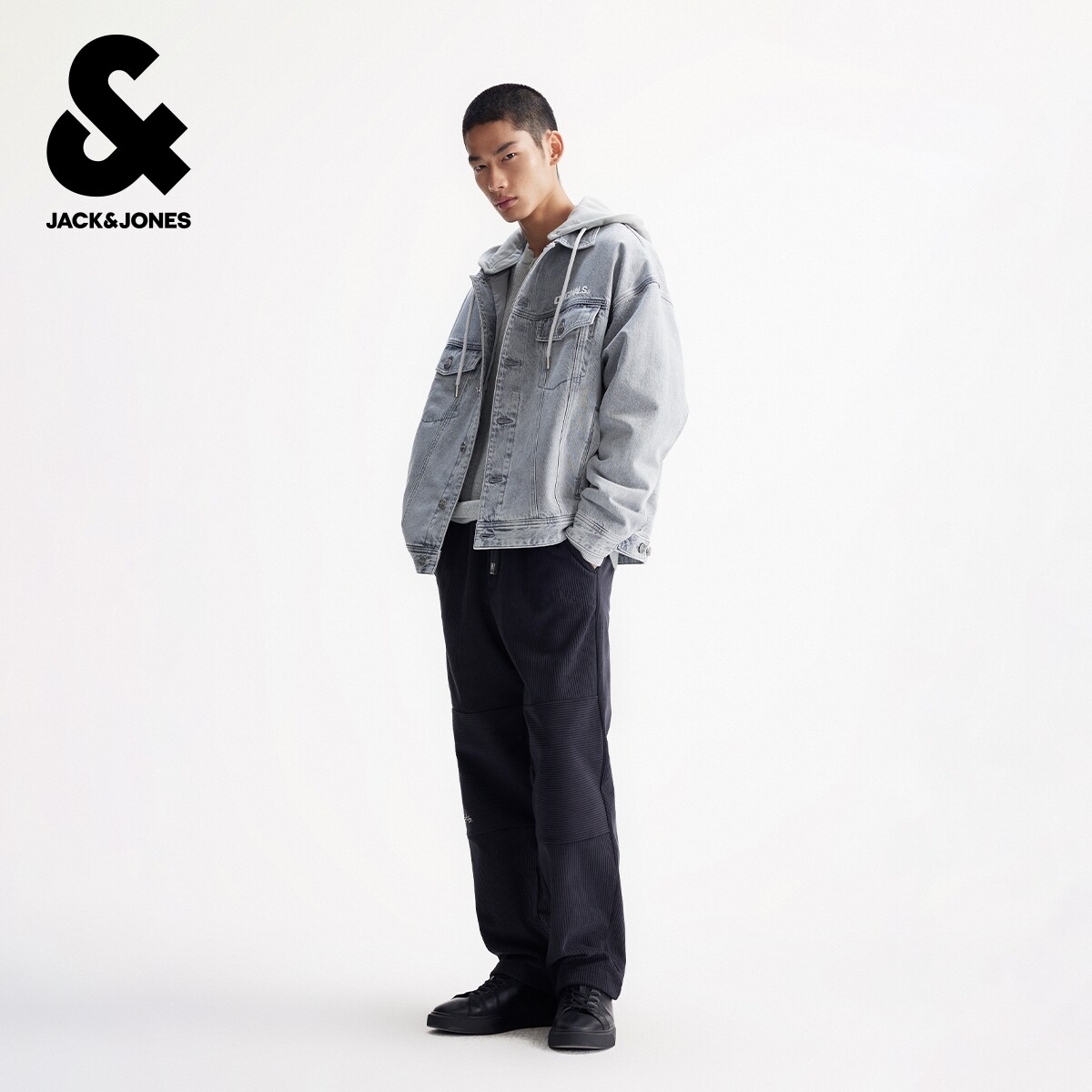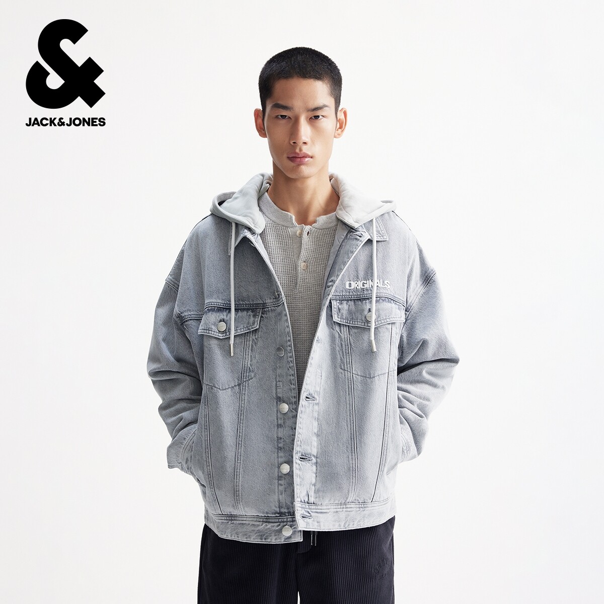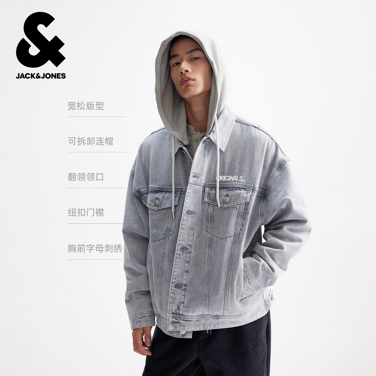杰克琼斯男装春季棉服舒适日常百搭款字母刺绣可拆卸连帽上衣外套