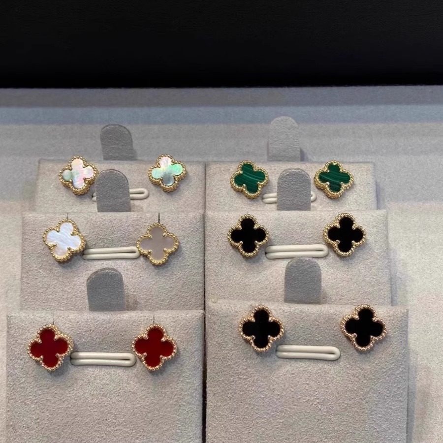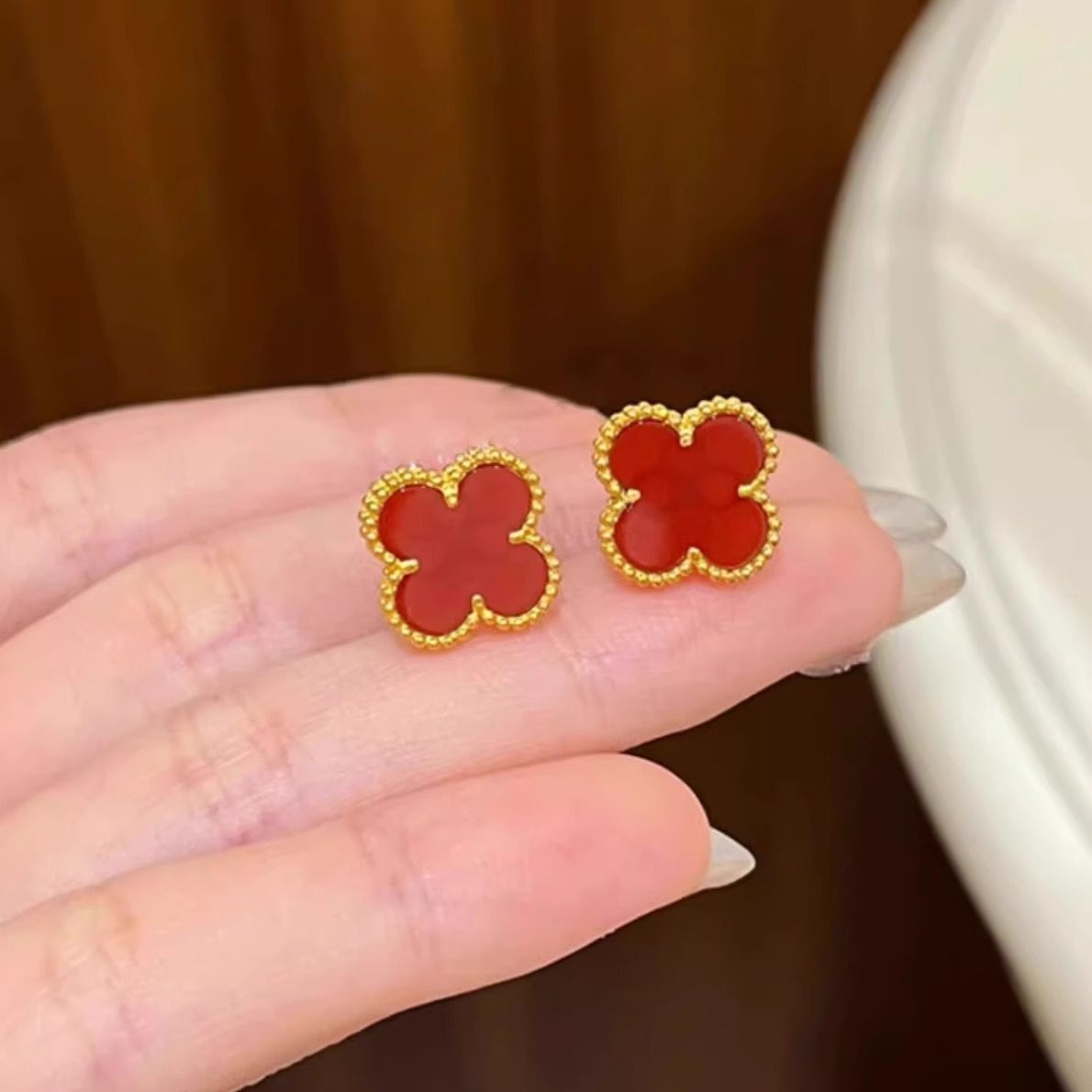 高级感四叶草耳扣纯银镀18k玫瑰金黑玛瑙红玉髓耳环耳钉耳拍贝母
