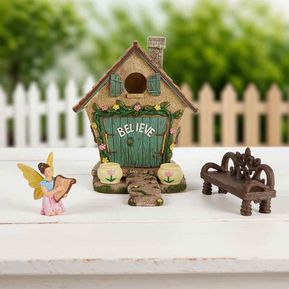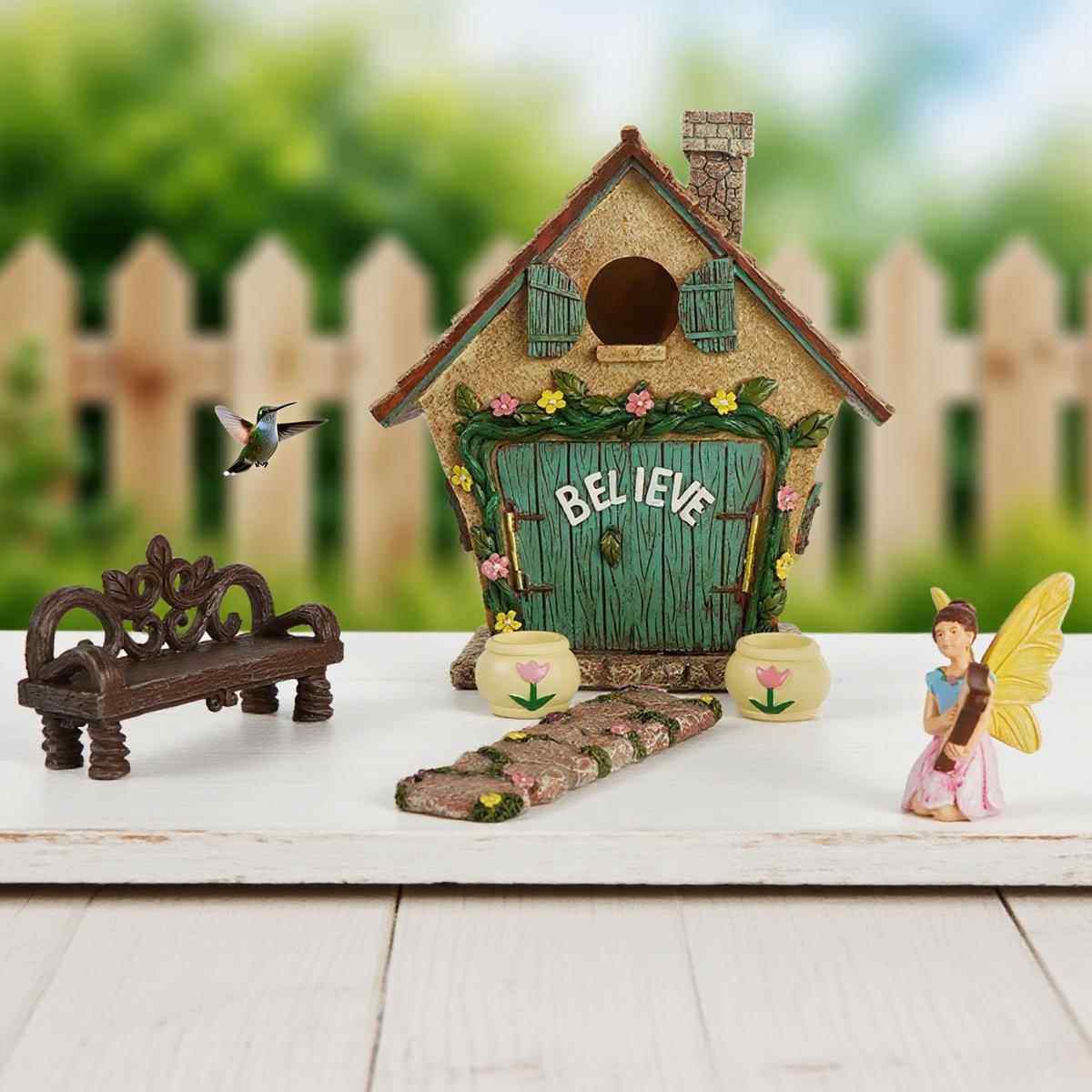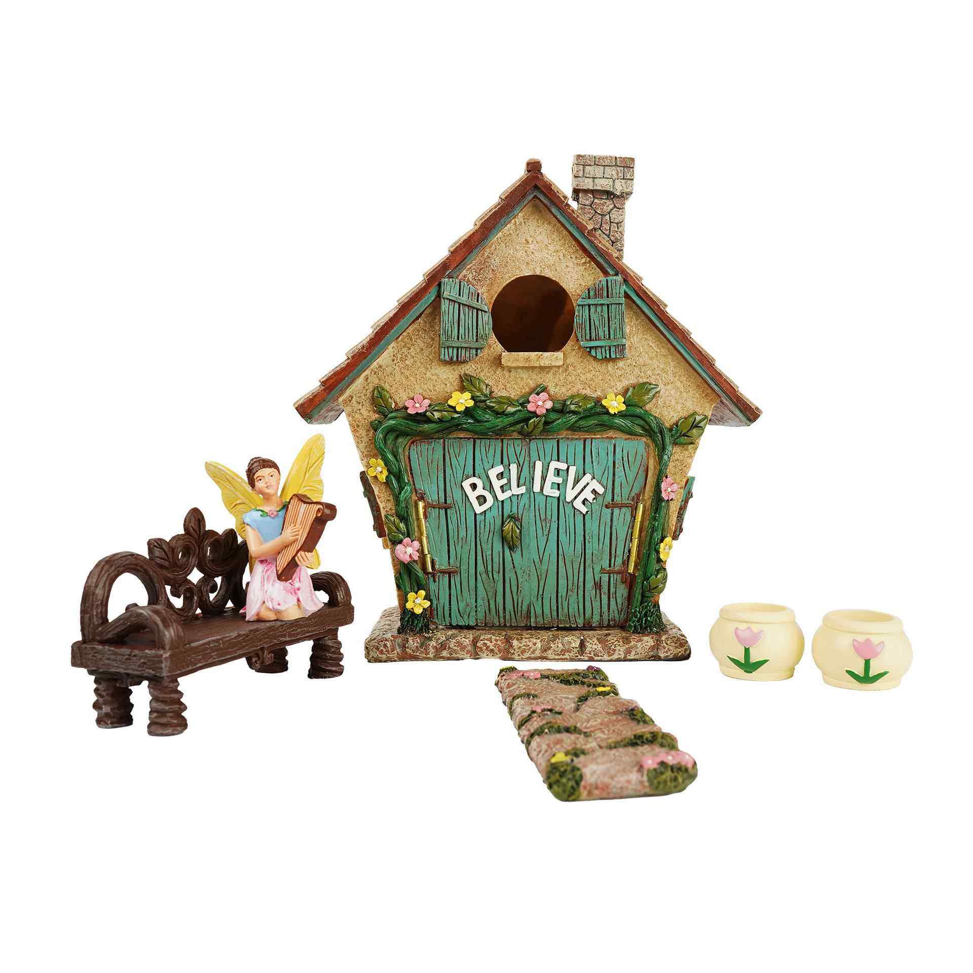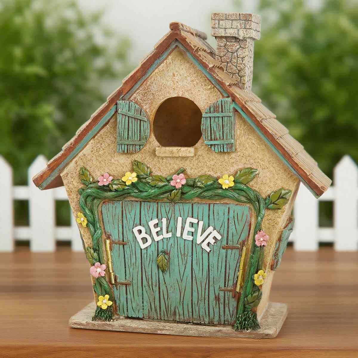 现货庭院鸟屋自动蜂鸟喂食器仙女树脂摆件户外花园房屋装饰摆件