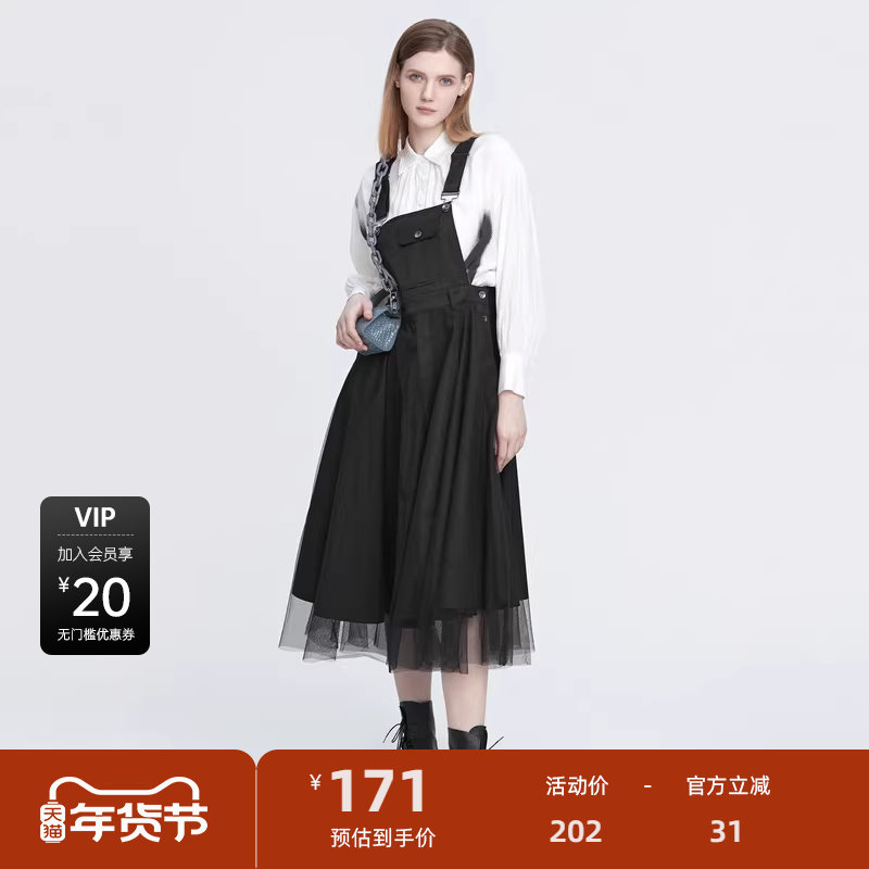 sdeer圣迪奥女装个性网纱拼接不规则背带连衣裙S22181201