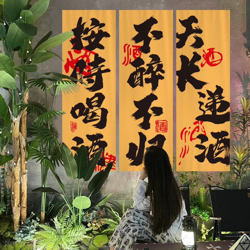 小酒馆装饰挂布网红打卡啤酒工业风氛围感布置墙布烧烤店挂布火锅店美食餐饮酒吧布帘毛笔字文化书法背景布