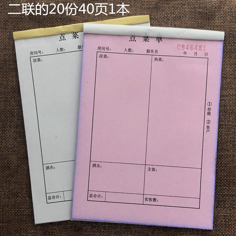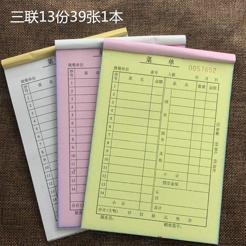 包邮36K点菜单一联二联三联无碳复写大号餐饮单饭店餐厅菜单票本