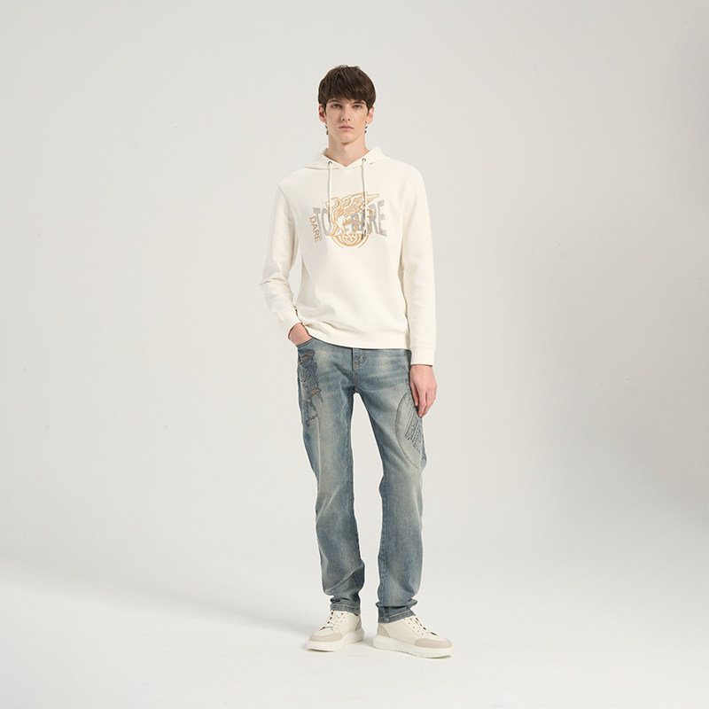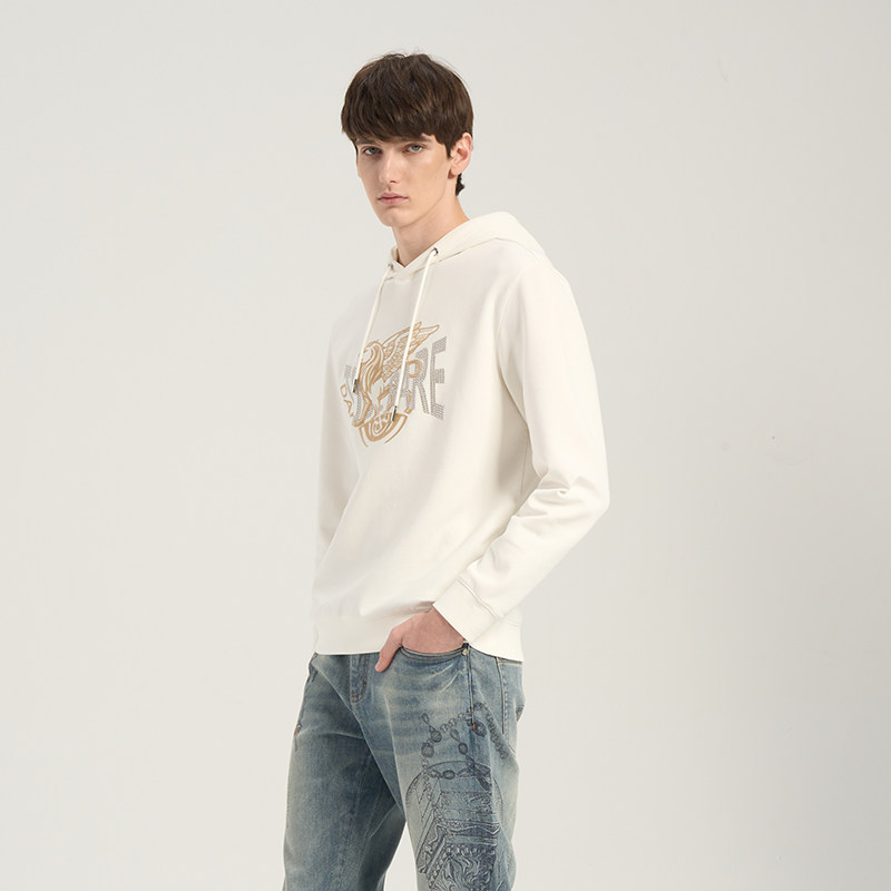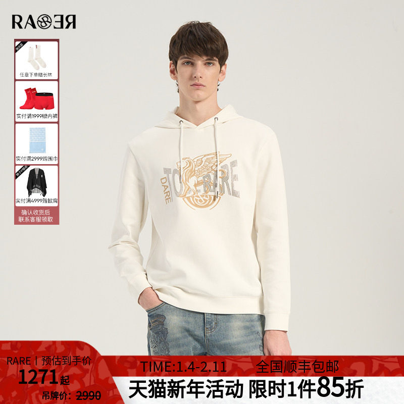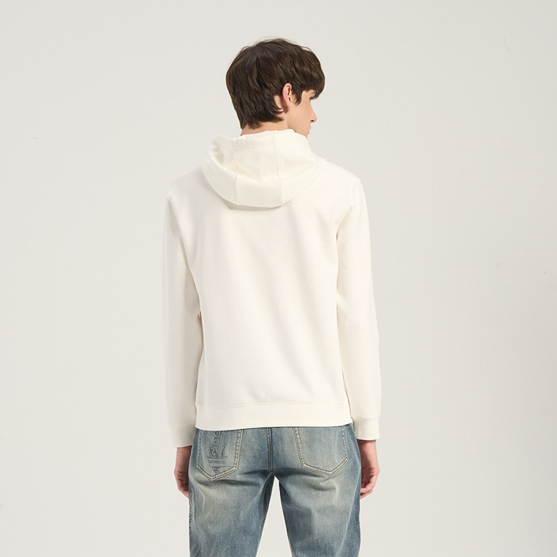 【棉质】RARE威雅男装 春夏新款马赛克飞狮米白色连帽卫衣男