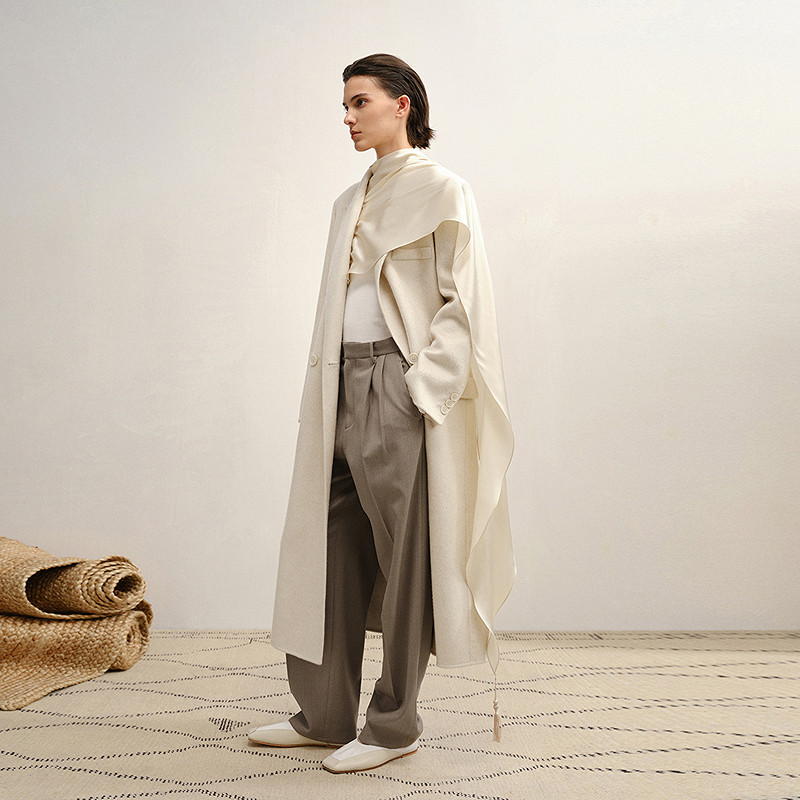 【商场同款/精工系列】LESS2025冬新款丝羊绒双面呢大衣2PB815590
