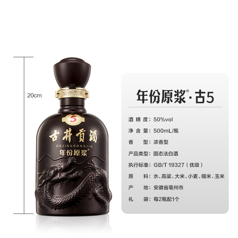 【官方直营】古井贡酒年份原浆古5-50度500mL*6瓶 浓香型白酒整箱