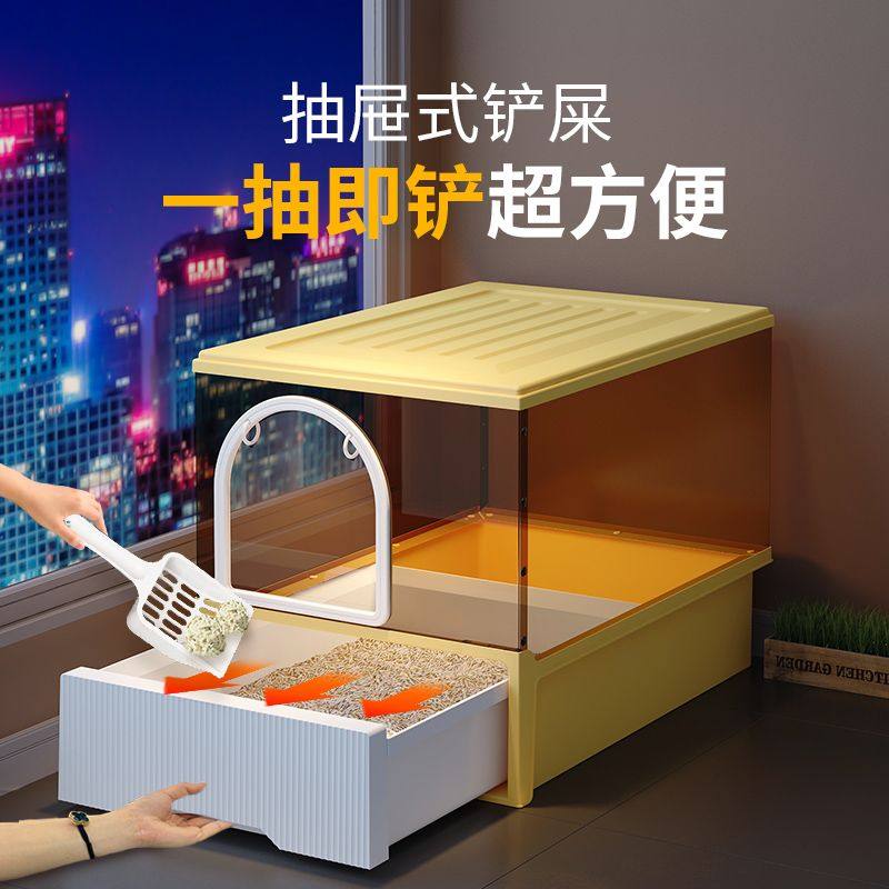 猫砂盆全封闭抽屉式超大号防外溅猫厕所防带砂屎盆猫沙盆封闭式