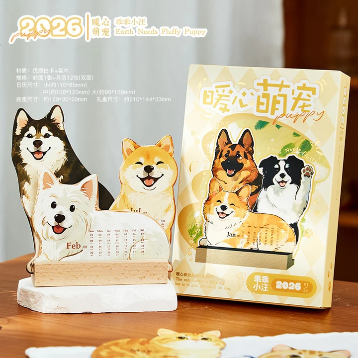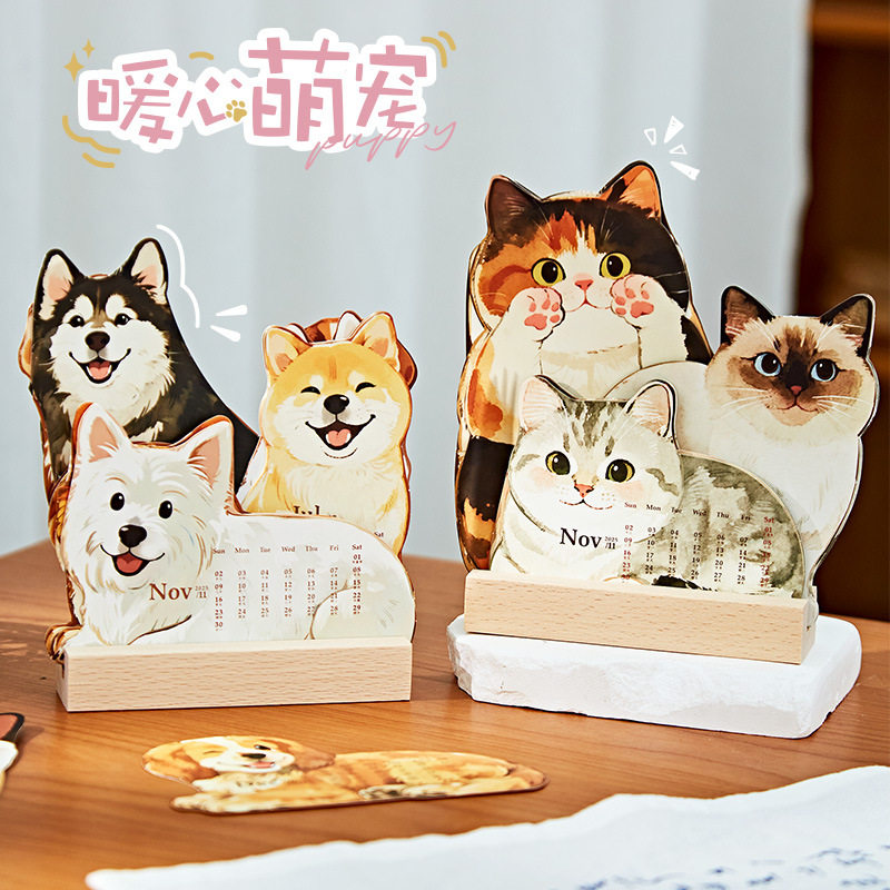 三年二班 2026宠物好友吸引日历高颜值ins风简约办公室桌面摆件打卡计划本倒计时日程备忘录月历新款创意台历