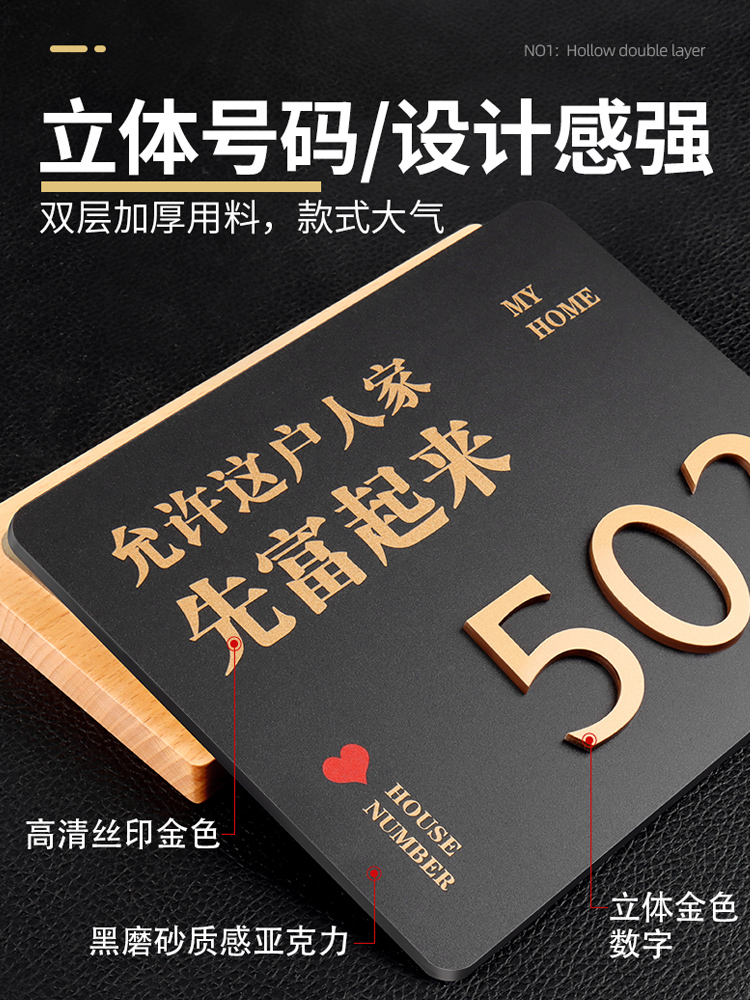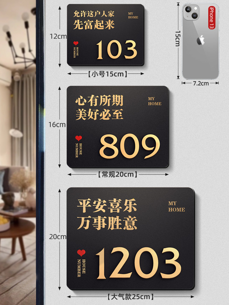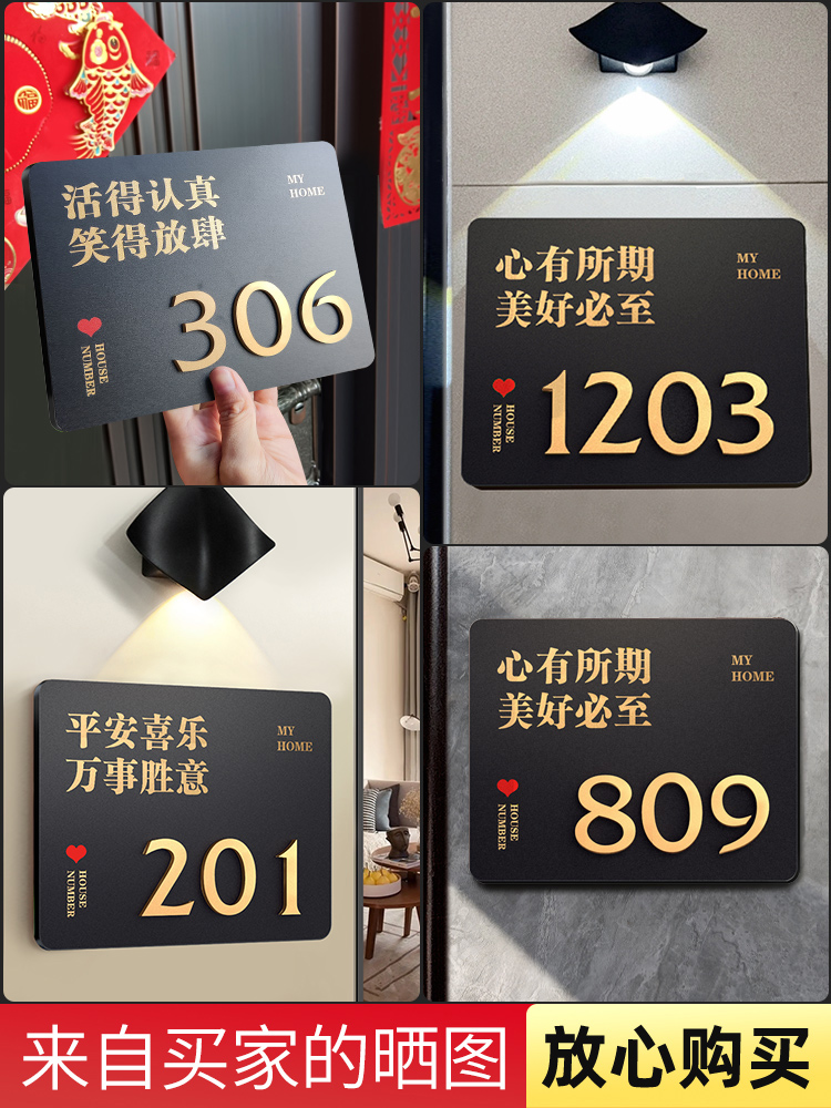 门牌号码牌家用2025年新款门牌号入户门装饰磁吸门牌订制创意轻奢住宅小区高级感门牌号感应灯定制房间号挂牌