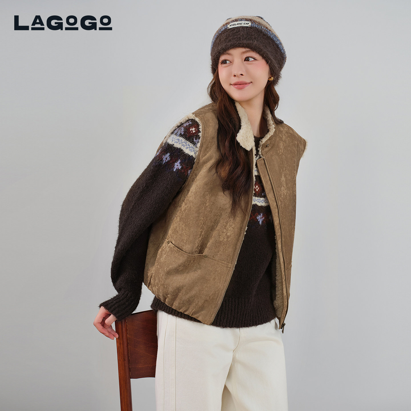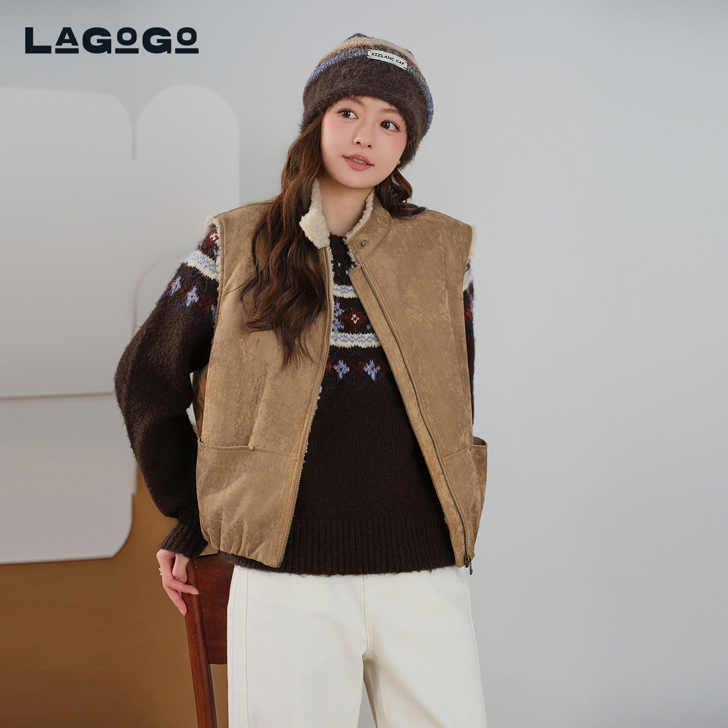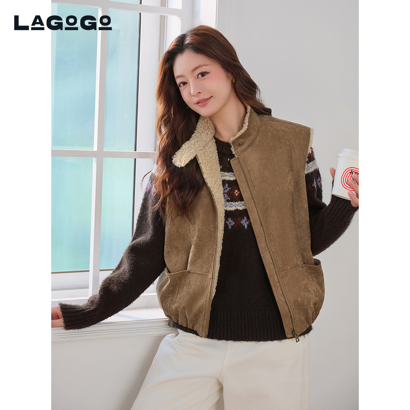 LAGOGO可露丽风仿羊羔毛马甲女拉谷谷2026春款保暖外套PBWW131B55