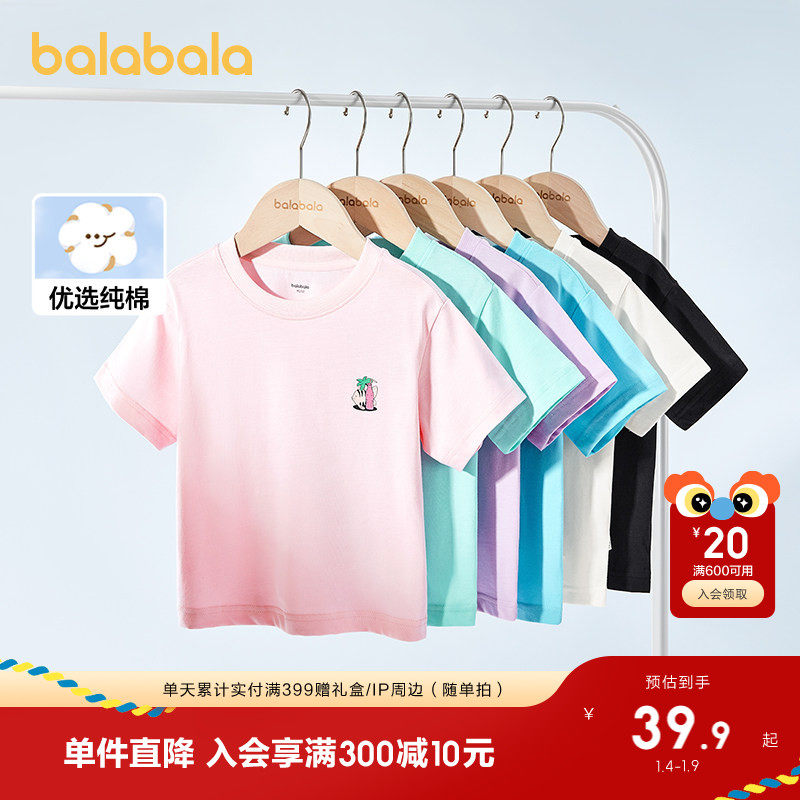 巴拉巴拉童装男童短袖t恤女童上衣宝宝2025新款夏装儿童全棉衣服