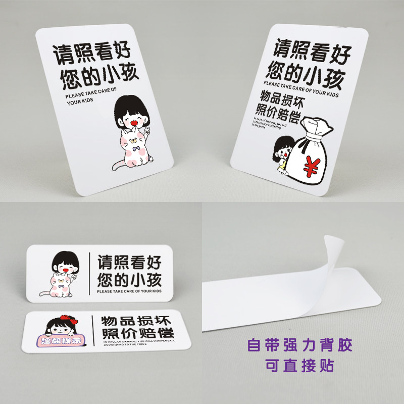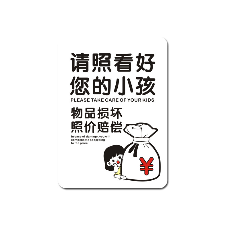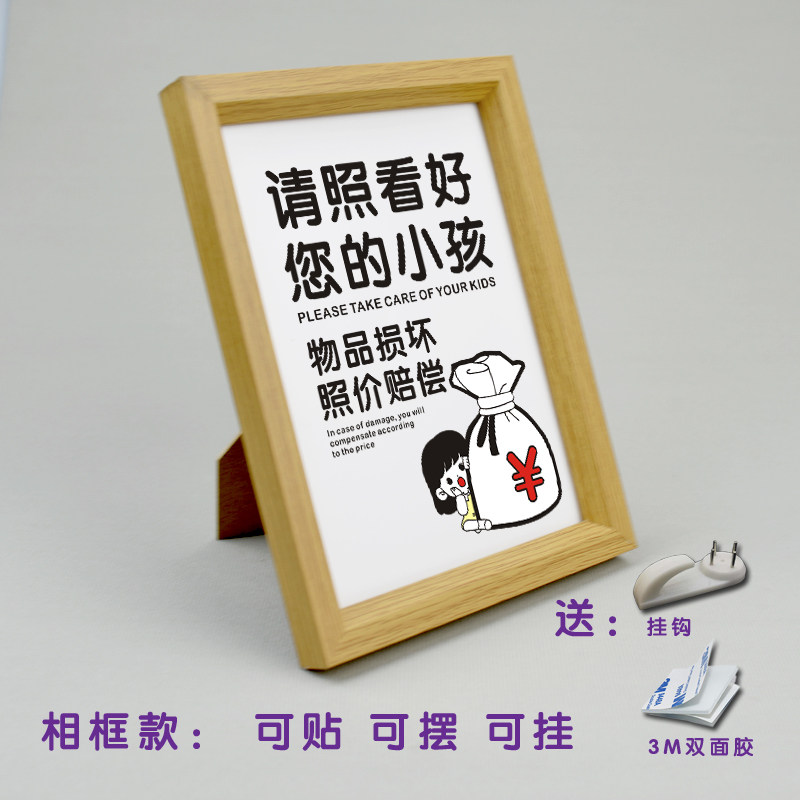 请照看好您的小孩物品损坏照价赔偿提示牌管好孩子警示牌PVC防水防晒磨砂哑面不反光贴纸立挂牌相框创意标识