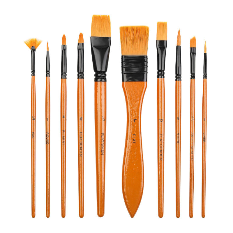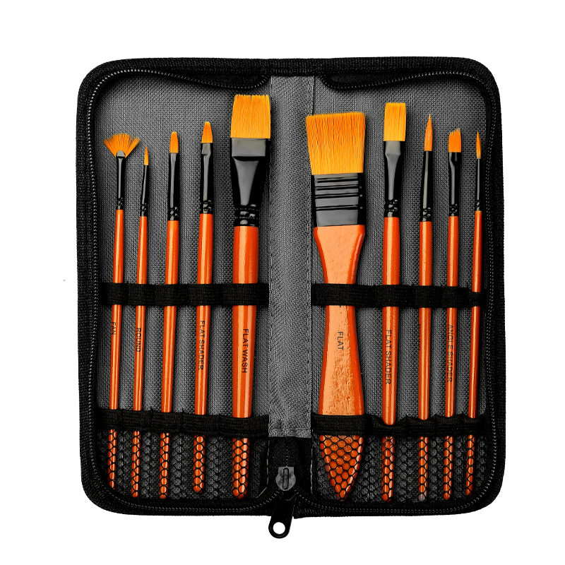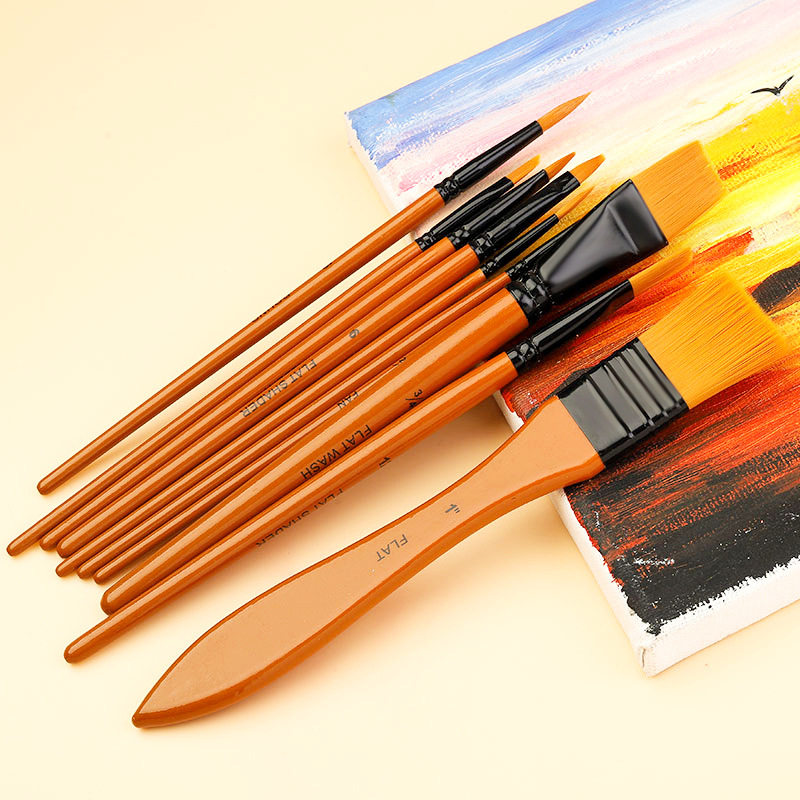 亚马逊油画笔10支便携套装手绘水粉笔刷排笔美术绘画尼龙油画笔