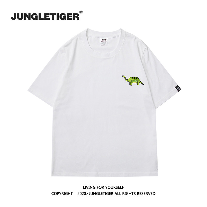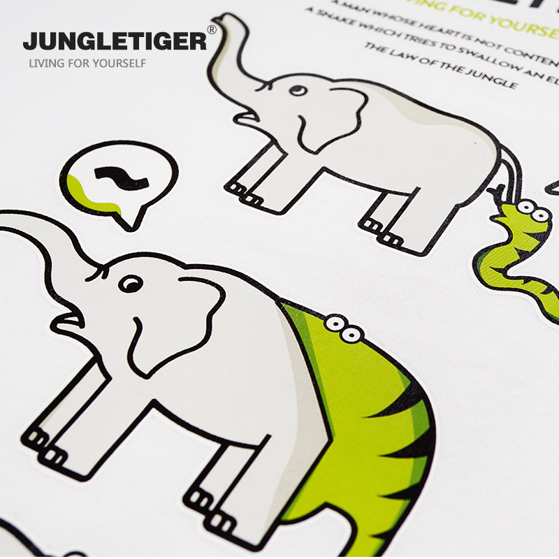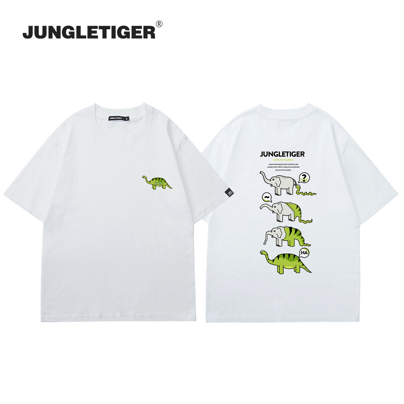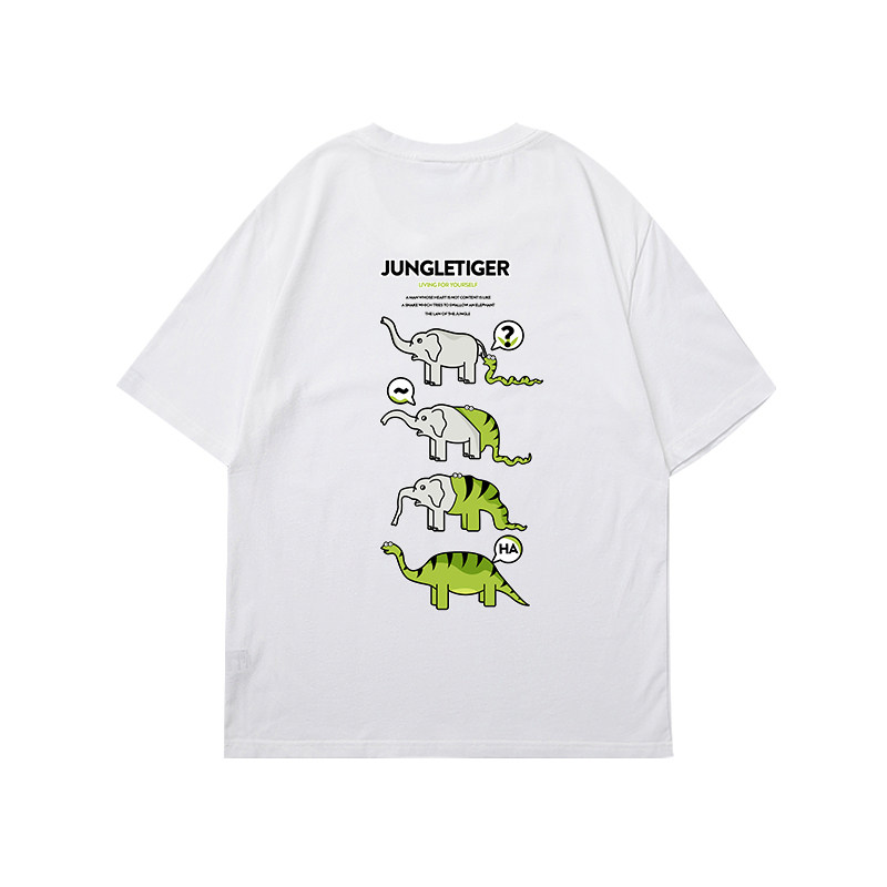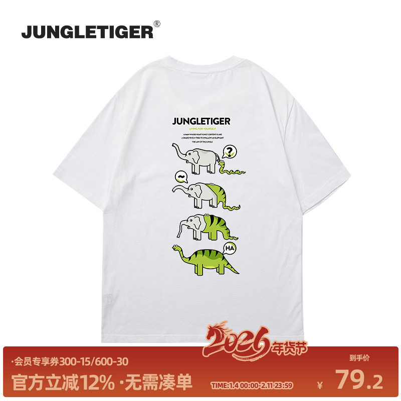 丛林老虎创意卡通蛇吞象印花t恤男女设计感260g重磅纯棉圆领短袖