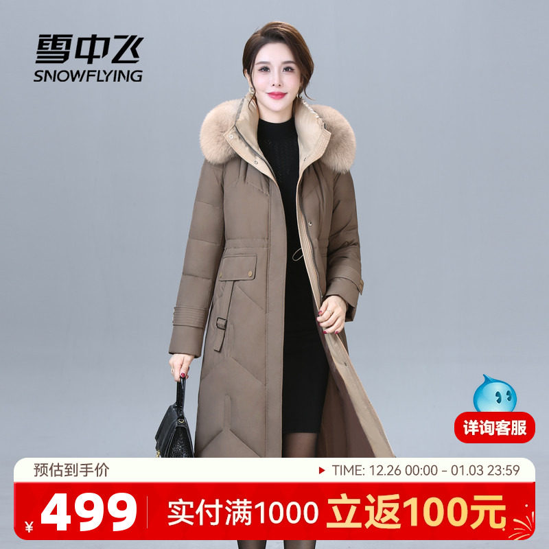 雪中飞2025冬新款羽绒服长款收腰气质中年妈妈狐狸毛领时尚保暖