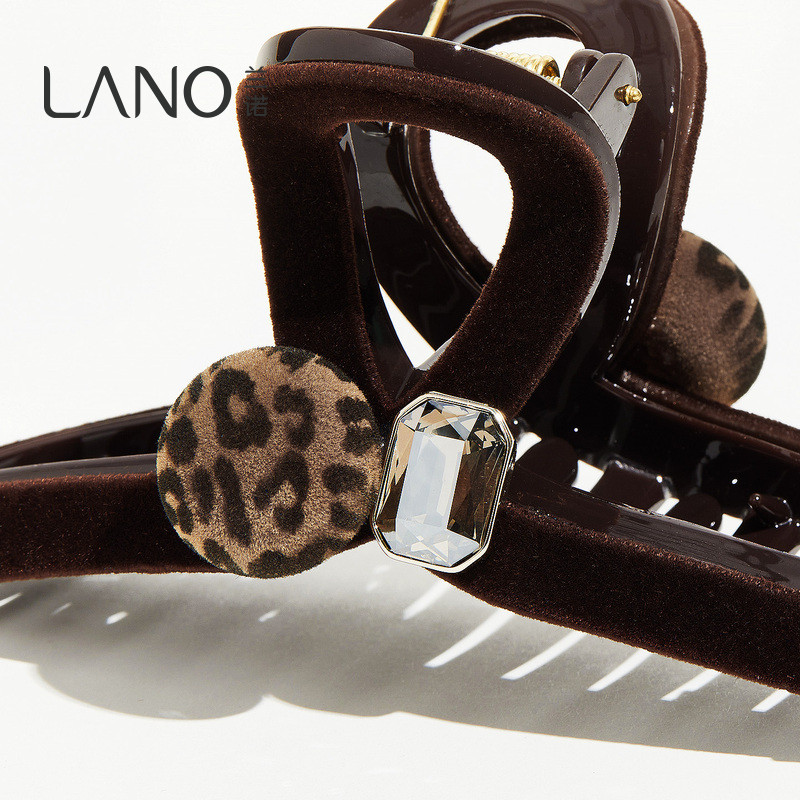 兰诺豹纹丝绒头发抓夹女高级感大号发量大后脑勺半扎发鲨鱼夹秋冬