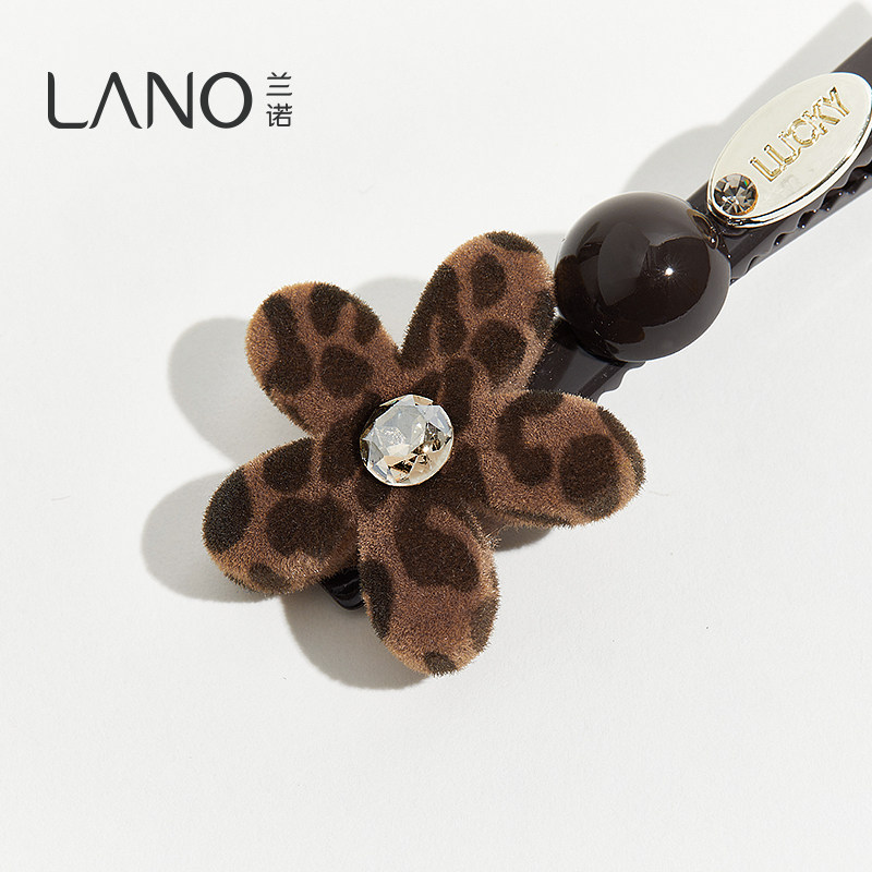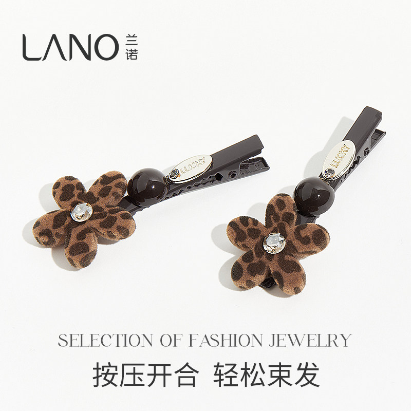 兰诺豹纹花朵发夹女2025新款高端侧边夹前额刘海夹对夹鸭嘴夹发饰