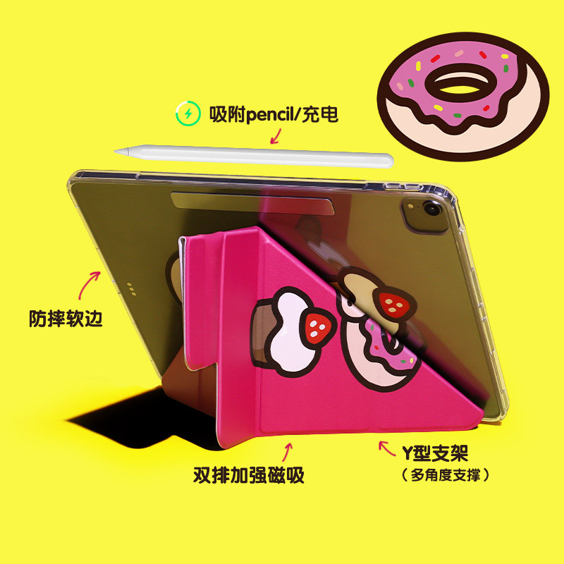 和风猫饭Y形三折磁吸搭扣可拆分全包平板iPad苹果保护壳透明亚克力款Pro11寸12.9寸mini6新款10代10.9华为11