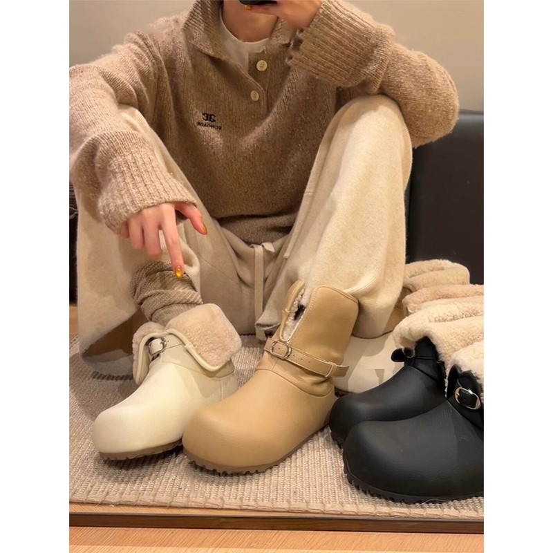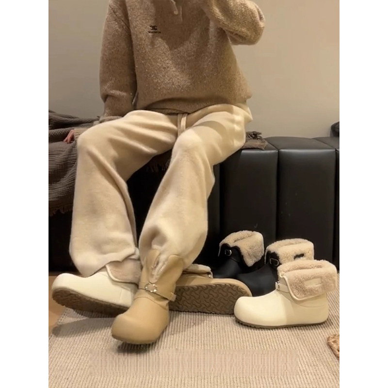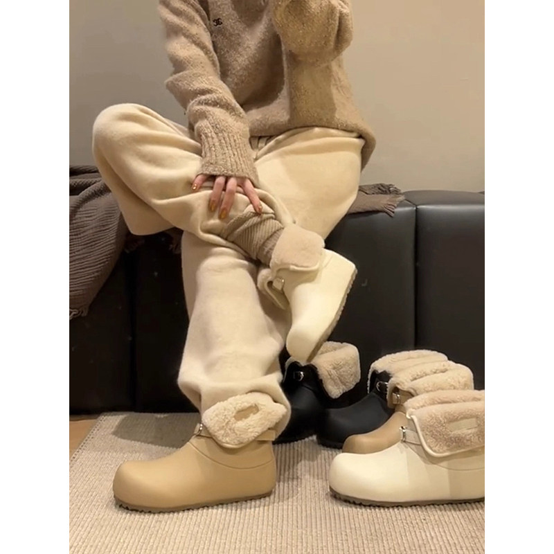两穿加绒加厚雪地靴女2025冬季新款防滑短靴毛毛勃肯鞋保暖面包鞋