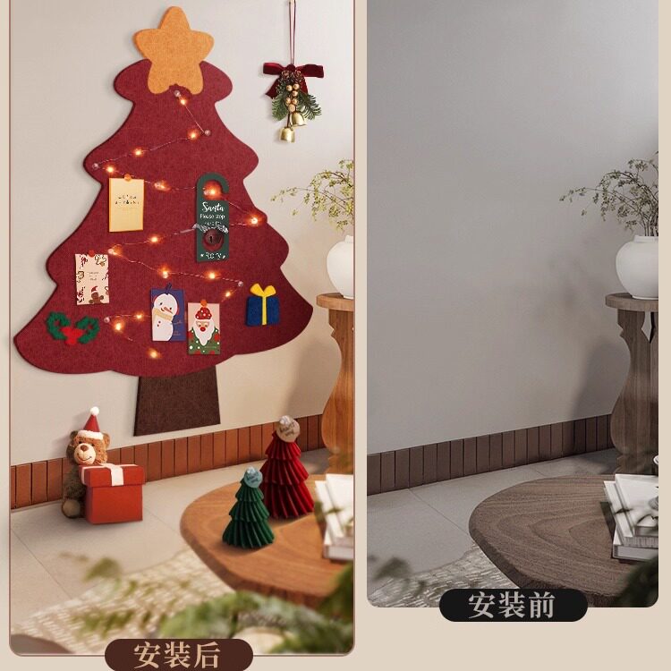 圣诞树毛毡板羊毛毡墙贴照片墙背景板软木板展示墙面装饰创意作品展示毛粘板高级感拍立得毛毡版圣诞节相片墙
