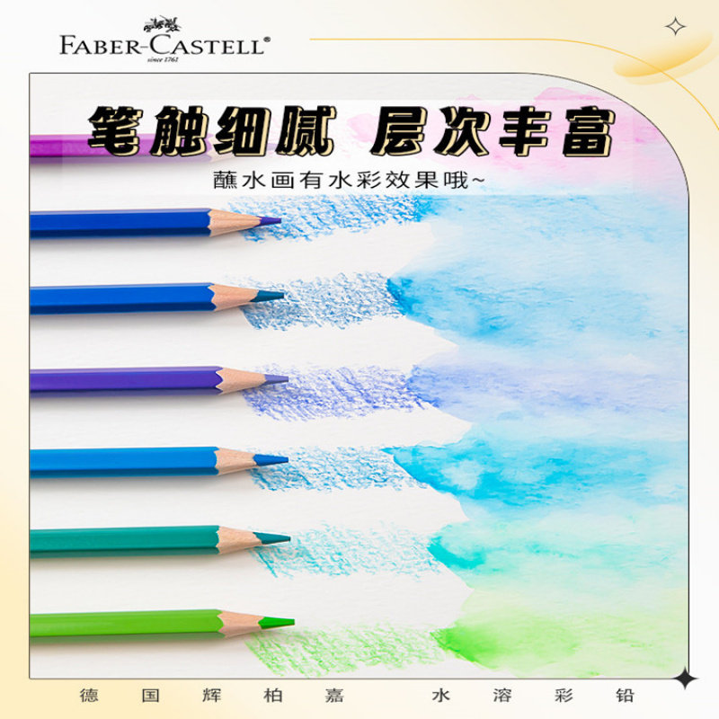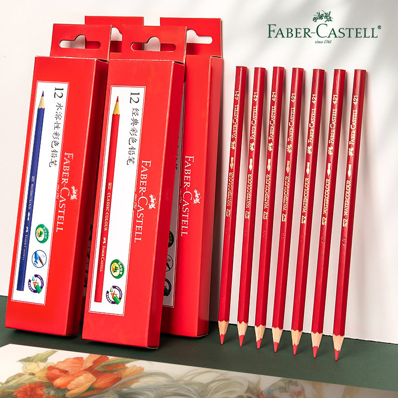 辉柏嘉水溶性彩铅单色黑白红补色绘图美术生绘画专用涂色彩色铅笔