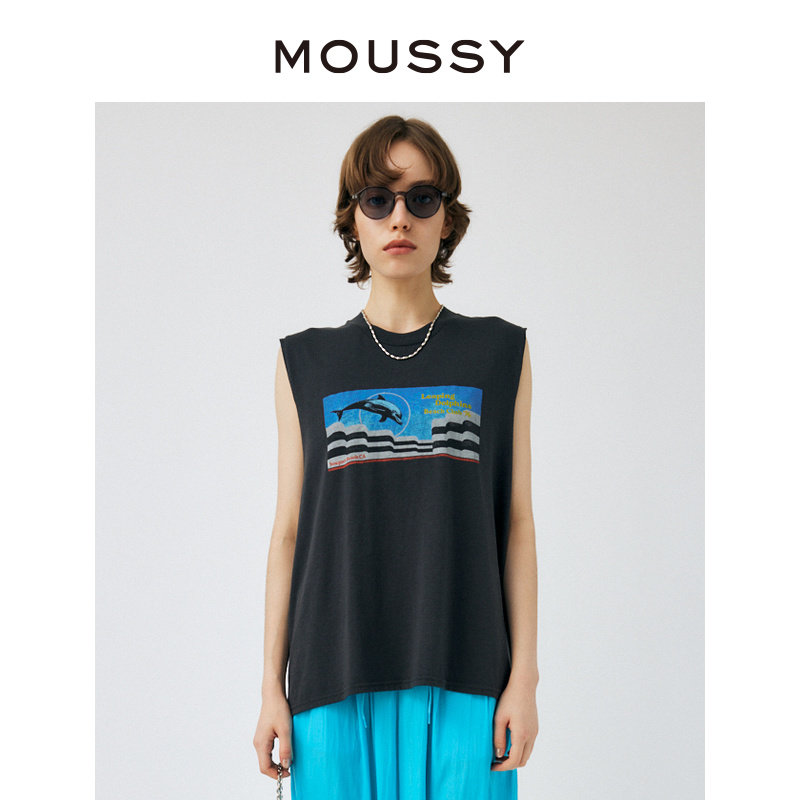 MOUSSY 冬季新品街头机车图案印花无袖T恤上衣010GSQ90-0420