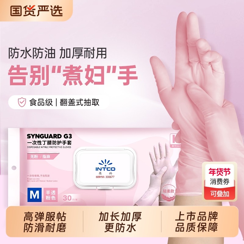 英科丁腈手套加长加厚厨房洗碗干家务防水耐用食品级橡胶乳胶耐磨
