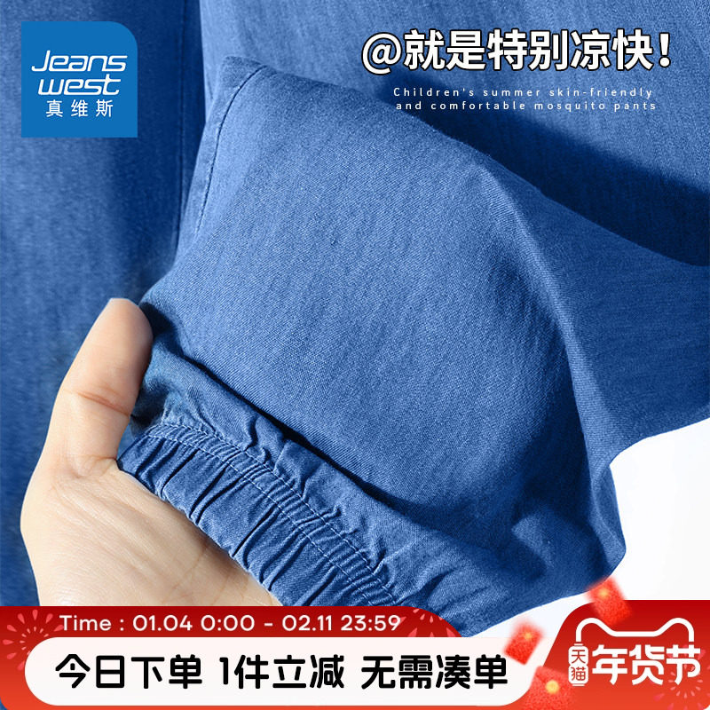 真维斯童装男童夏款裤子儿童2025新款牛仔防蚊裤男大童休闲裤夏装