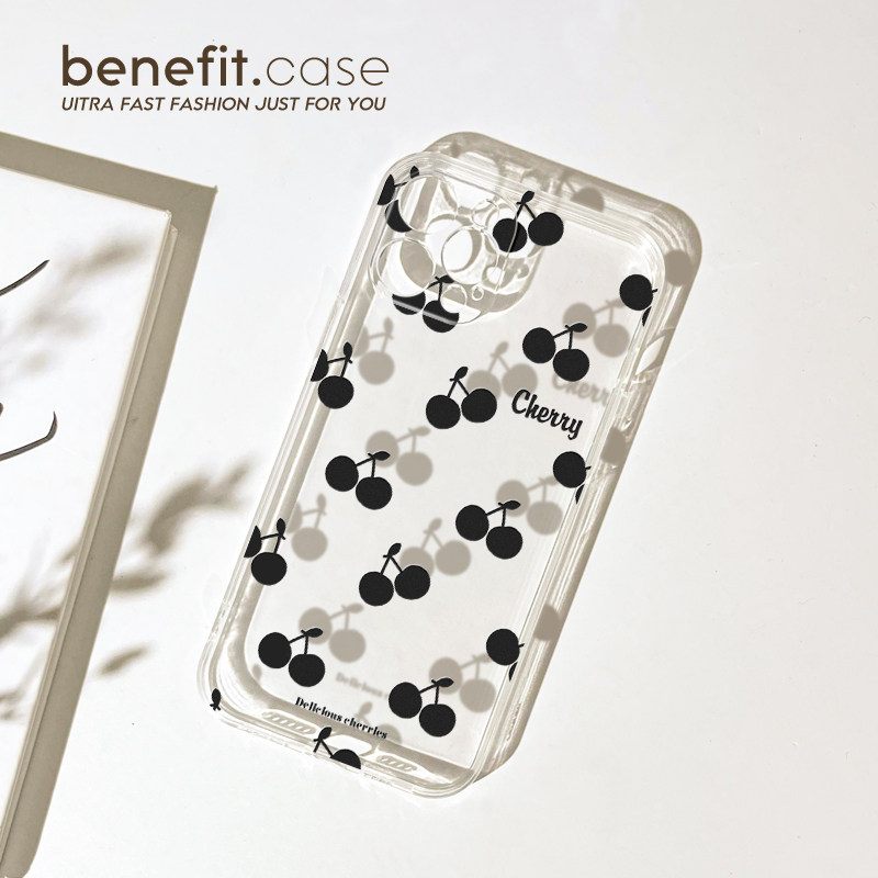 benefit高级感黑色樱桃17pro16适用15苹果13手机壳iphone14promax新款12套11创意xsmax透明xr全包8plus硅胶防