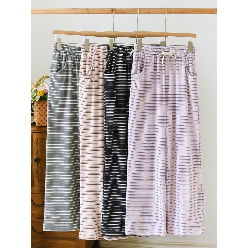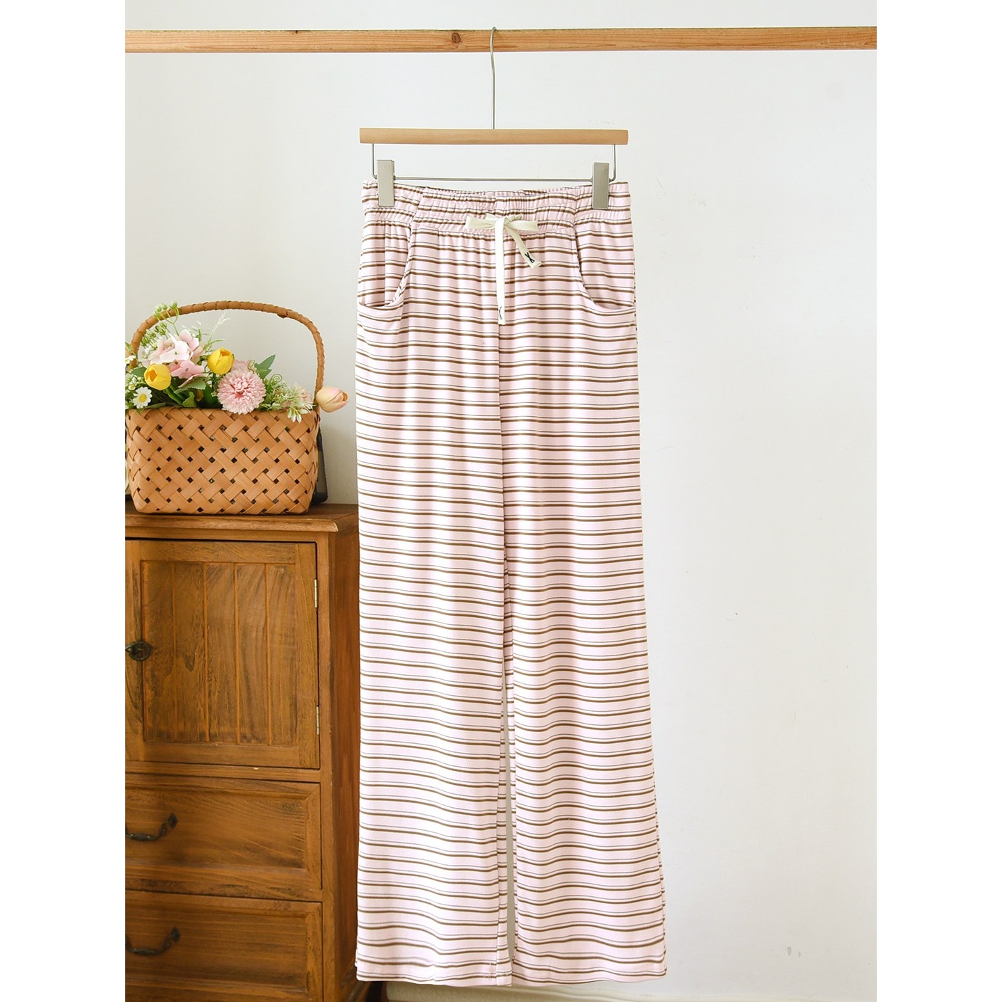 红豆条纹睡裤女秋冬德绒长裤加厚保暖带口袋2025新款薄冬天直筒家