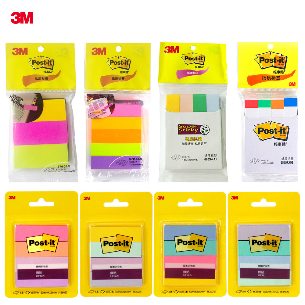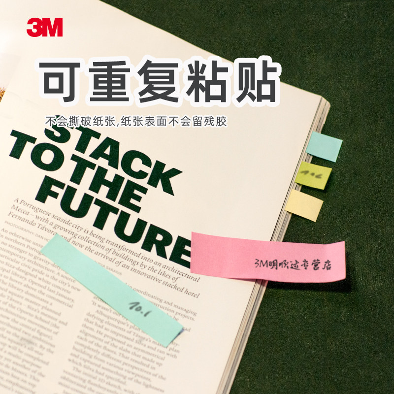 3M报事贴纸质标签贴分类页新狠贴粉彩指示标签便利贴可书写便签贴纸索引贴指示贴学习办公重点备忘录塑料标签